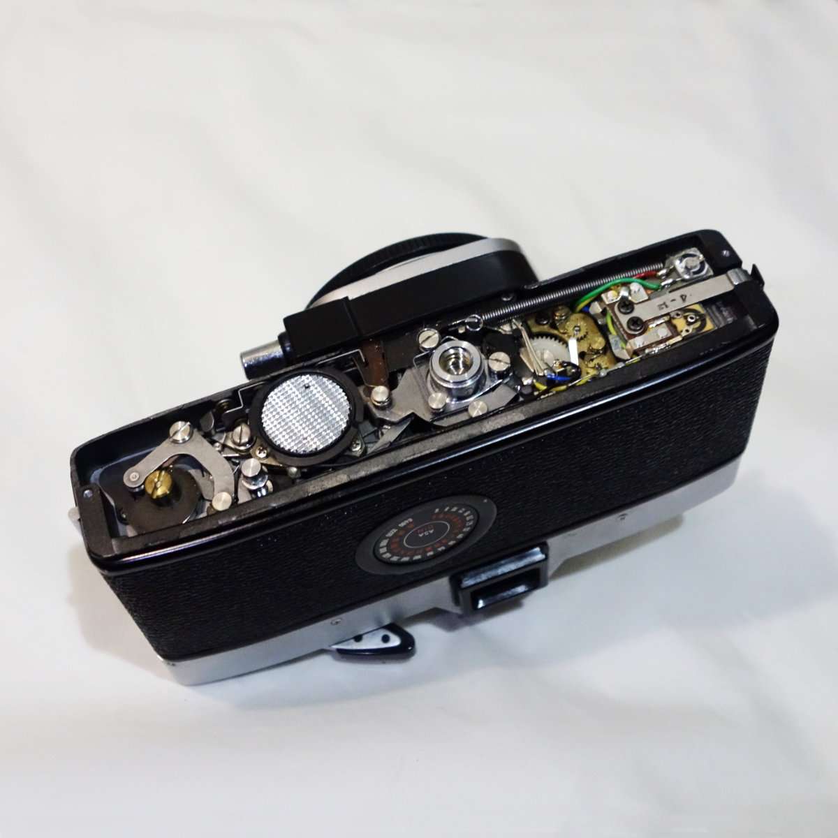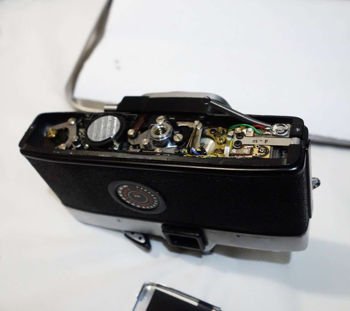 かなり根気がいりますが、細かい部分まで全てのモルトを剥がしてフィルム室と裏蓋を綺麗に仕上げます。まだシャッターなど動かない部分があるので、モルトの貼り直しはカメラを修理をしてからにします。