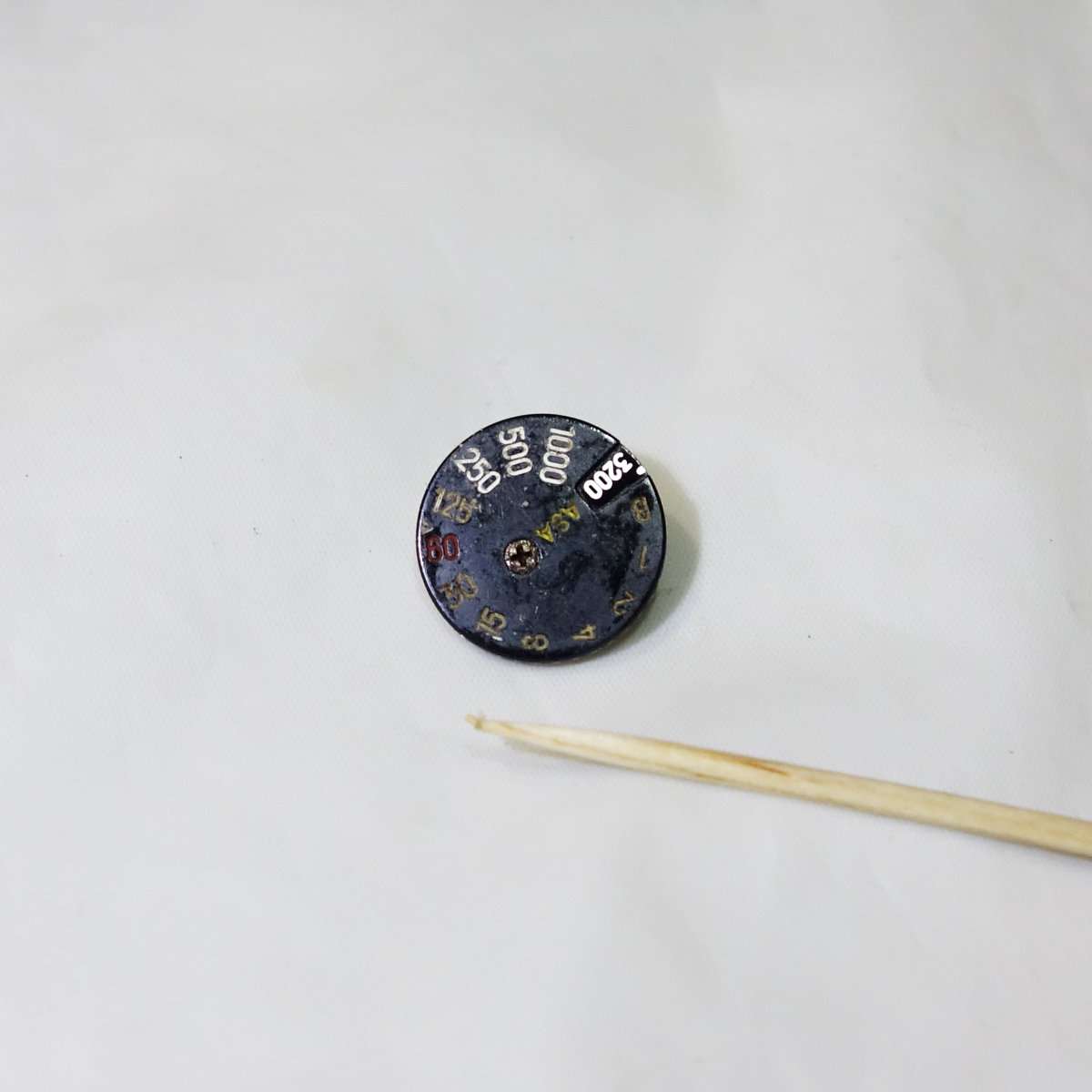 ジャンクカメラとして放置されていたからか、シャッタースピードダイヤルのプレートがありえないほど汚れています。無水エタノールと爪楊枝で1/250〜1/1000までは読めるようにしましたが、かなり汚いのでこれは別途綺麗にしてリペイントする事にしました。