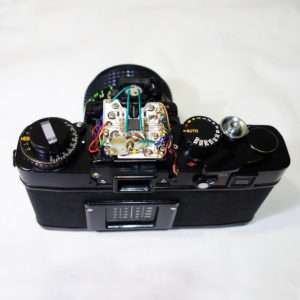 実際に様々な状況で撮影をしてみると絞りの値に対してのシャッタースピードは合っているようですが、ファインダーを覗いた時のメーター内の針が少しずれているようなので再調整する事にしました。こういう場合に分割式のトップカバーは便利で気軽に調整が出来て便利です。