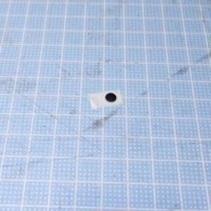小さいネジカバーを指でつまむと手の脂が付いてしまうので、ここでも無水エタノールで脱脂します。指紋と指の油が付かないようにピンセットなどでネジカバーをマスキングテープの上に置いて接着剤を塗ります。パーツを摘むピンセットは手を離している状態で自動で閉まっている逆作用ピンセットが便利です。ネジカバーは次回の整備の際に取り外しする必要があるので接着の弱いGクリアで取り付けます。