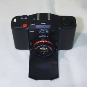 カメラにバルブ機能があればシャッターを開きっぱなしに出来て楽にフォーカス調整が出来るのですが、コンパクトカメラやこのMinox 35にはバルブがありません。そこで露出計をカバーして暗い状態だとカメラに思い込ませます。Minox 35はレンズ沈胴前面の前からみて左側にCdSがありそこで露出を測っています。そこにテープを貼ることでカメラは真っ暗と勘違いします。35GT−Eも含め35GT以降のモデルには露光時間を2倍にする機能があり、ケース上部分にスイッチがあるのでそのスイッチもオンにしておきましょう。これで