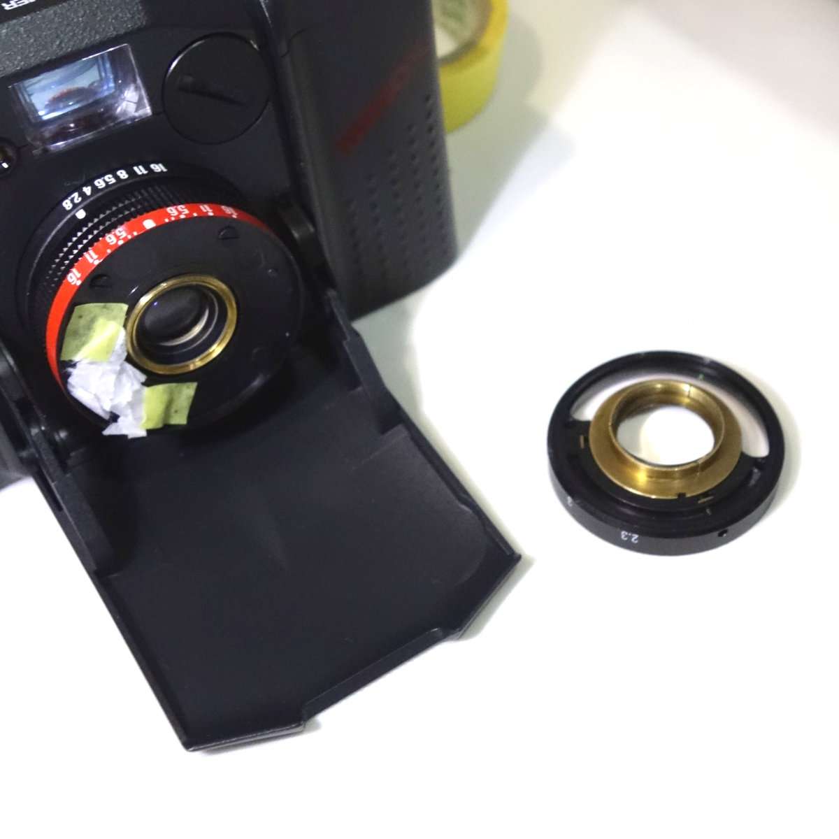 調整が終わったらレンズ沈胴の前面につけたテープをはがしてレンズを取り付けましょう