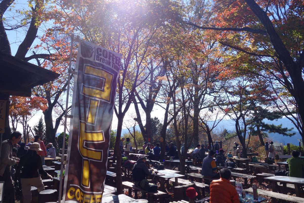 歩いていると小高い場所に白い電波塔が見えてきます。そこが城山で高尾山山頂から1番近い隣の山頂になります。陣馬山へ行く場合はこの様な山頂が5つほど続きます。その中でもこの城山の売店が大きく椅子やテーブルも多くトイレもあるのでランチをする場所にもよいでしょう。売店の前の坂の目の前にピクニックが出来る場所もあるのでテーブルが混んでいればそこでも休憩が出来ますし、天気がよければお昼寝にも最適です。