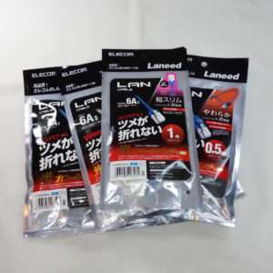 今回選んだのはELECOM(エレコム)のEthernet(イーサネット)用LANケーブルの各種です。長さやタイプなど様々なケーブルを試してみる事にしました。