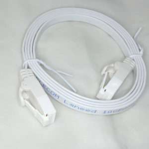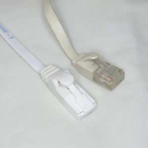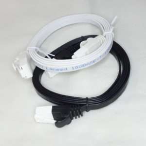 こちらはフラットケーブルで通称きしめんケーブルと呼ばれるタイプです。こちらは1mでもそれほど取りましは関係ないのでONU(光回線の終端装置)と無線LANルーターを繋ぐのに使用します。フラットケーブルはノイズに弱いと言われる事もありますが、通常の家庭で使用する分にはまず問題は出ることはないと思います。