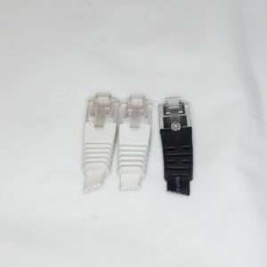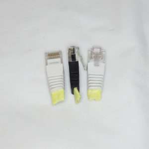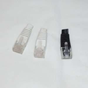 今回取り外したケーブルは端子部分が破損したものとカテゴリーの表記がないものがあり接続スピードがわからずケーブルとして再利用はしない方がよいので、コネクター部分のみをリサイクルします。このコネクターを取り外しハブやルーターの使用していないポート部分に挿し込んでホコリ侵入防止コネクターにします。