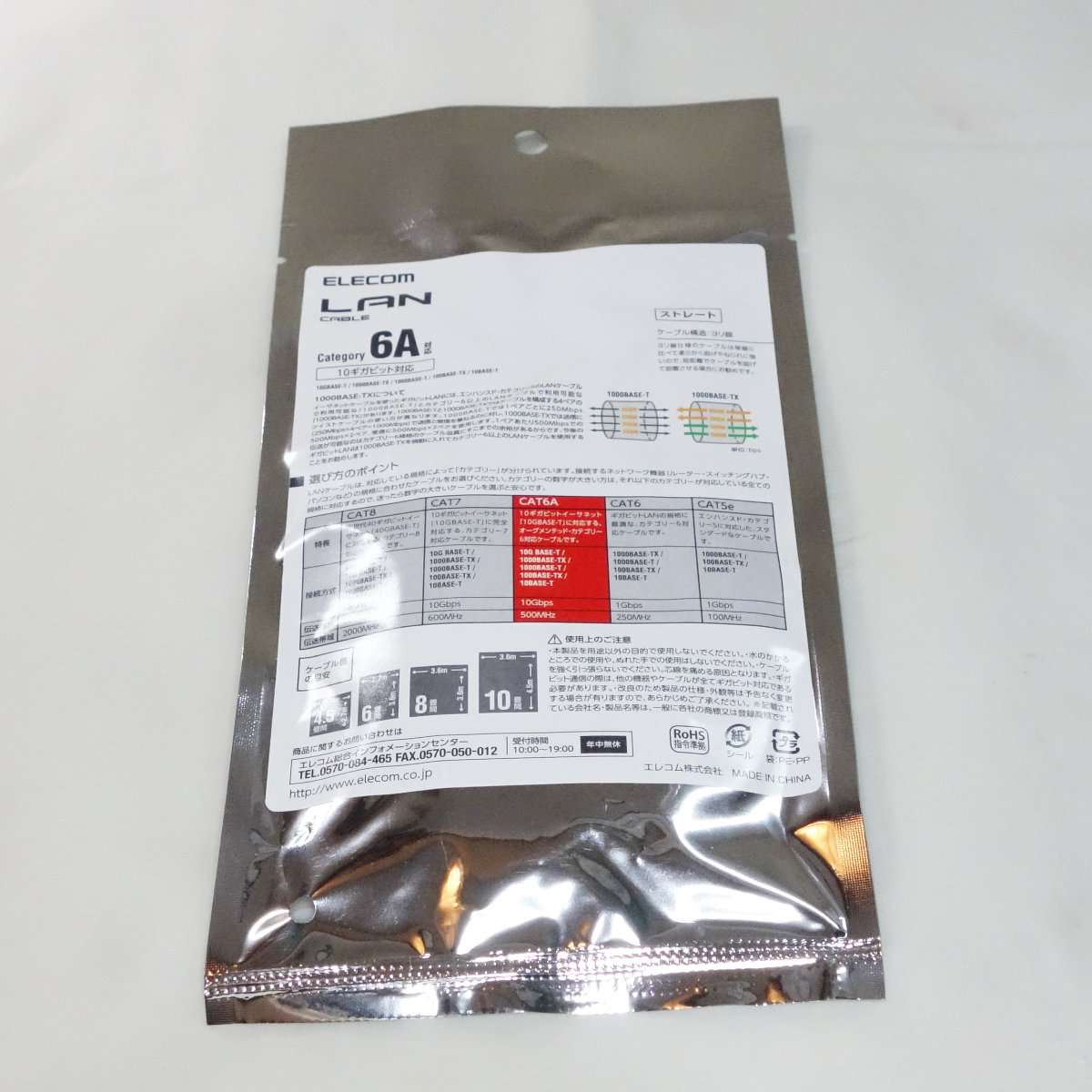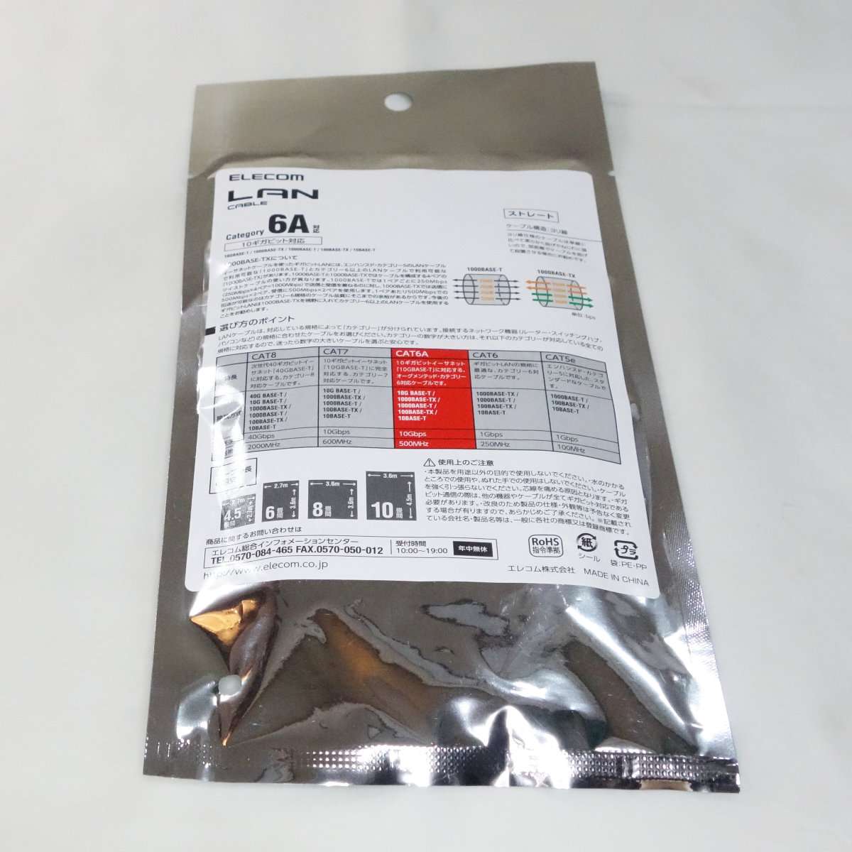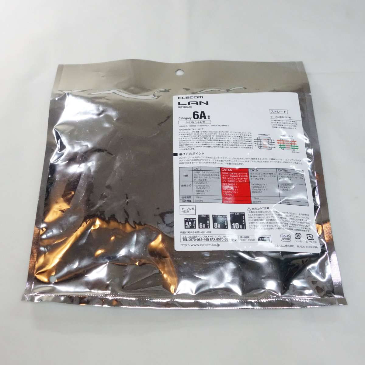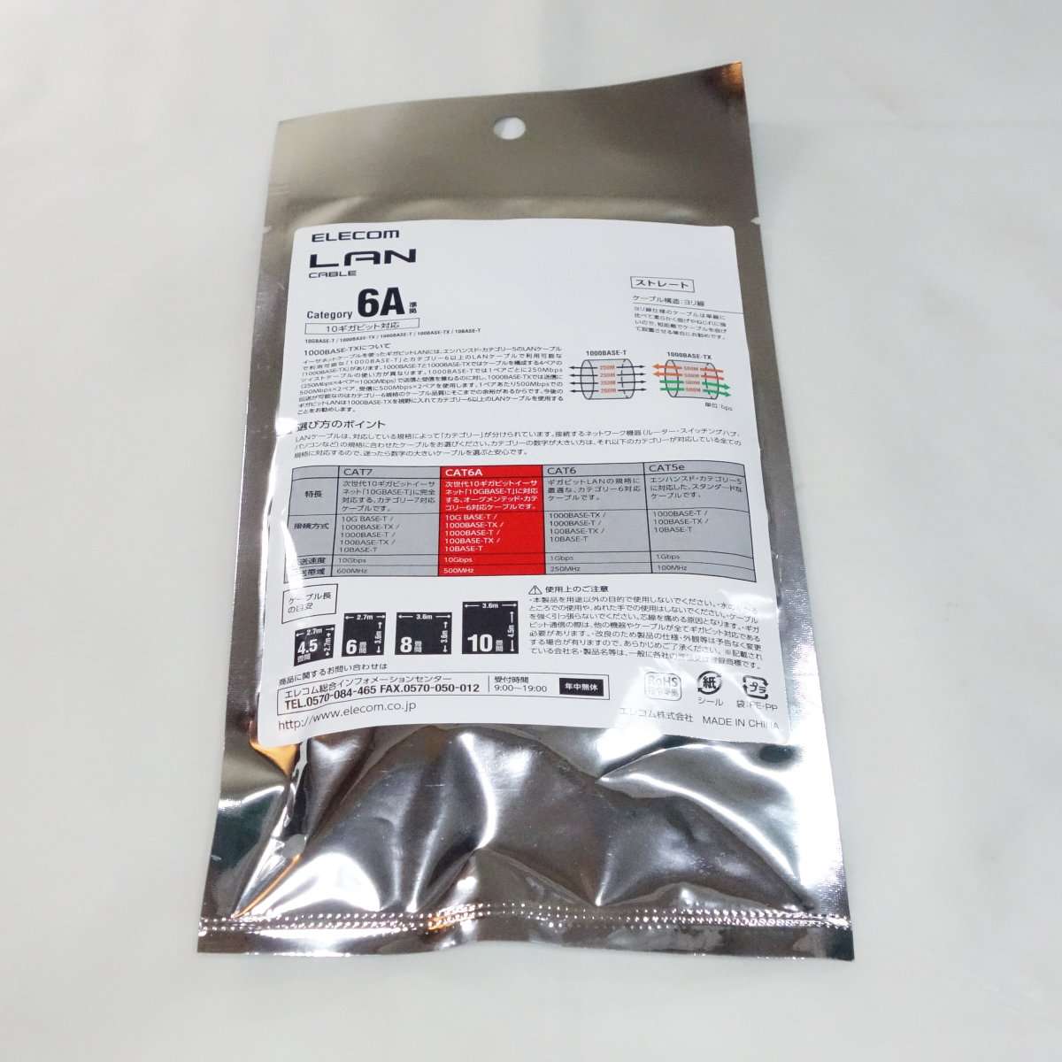 LANケーブルには規格がありスピードによって名称が違い今回選んだケーブルはどれもCAT-6A(カテゴリー6A)で10GBASE-Tまでのスピードに対応します。下位互換なので1000BASE-T以下の速度にも対応しています。