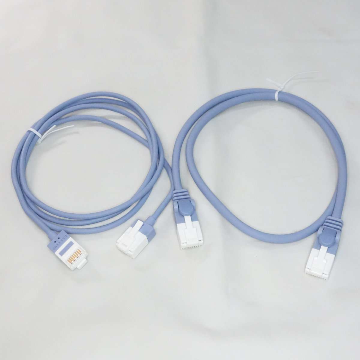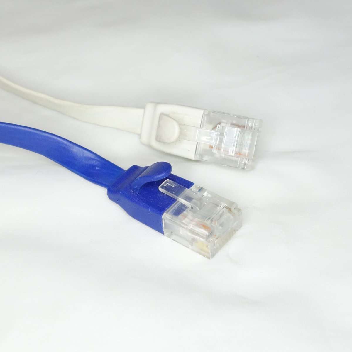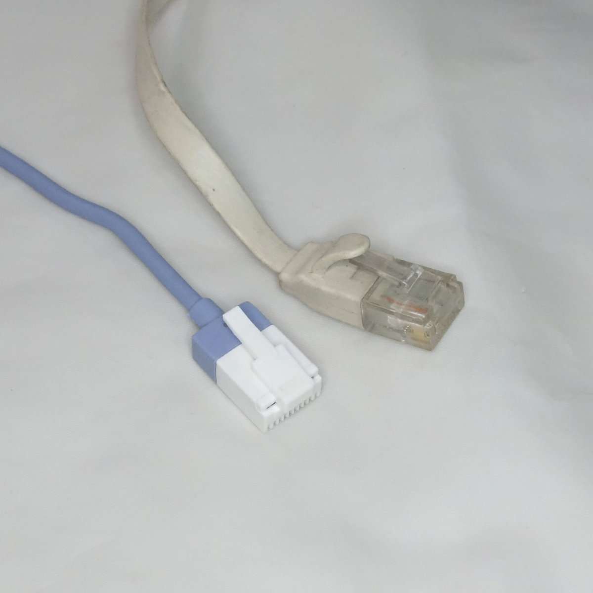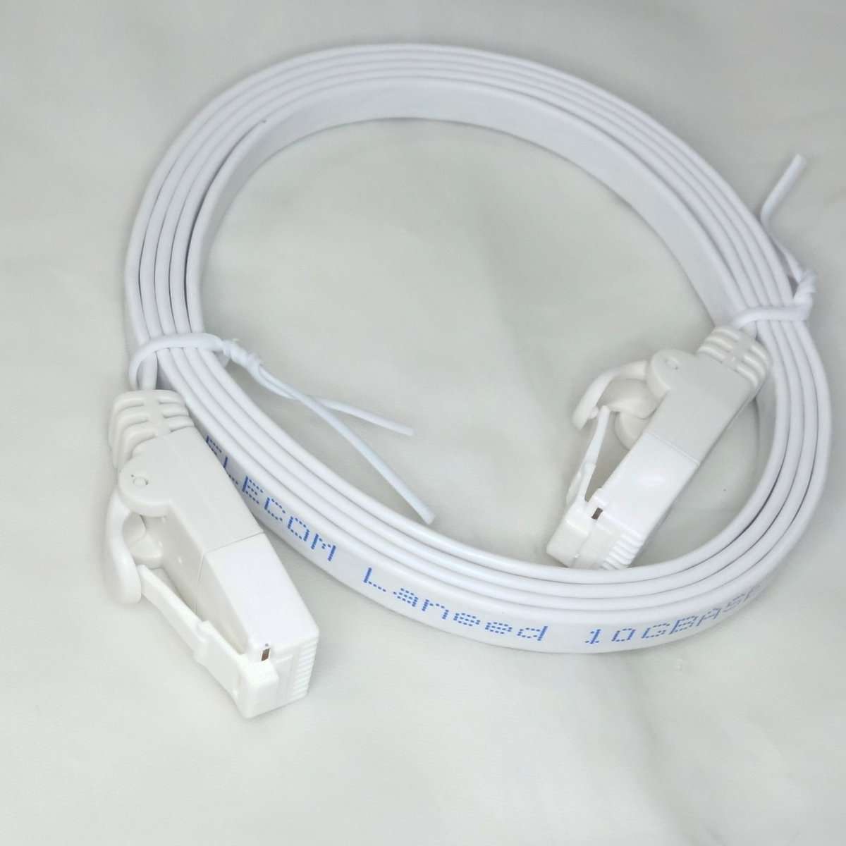 こちらはフラットケーブルで通称きしめんケーブルと呼ばれるタイプです。こちらは1mでもそれほど取りましは関係ないのでONU(光回線の終端装置)と無線LANルーターを繋ぐのに使用します。フラットケーブルはノイズに弱いと言われる事もありますが、通常の家庭で使用する分にはまず問題は出ることはないと思います。