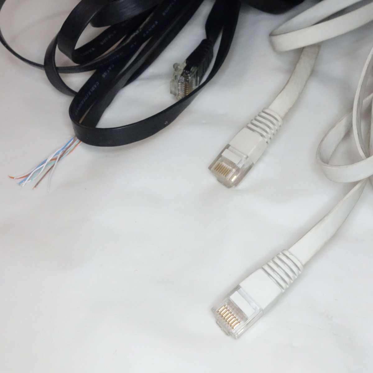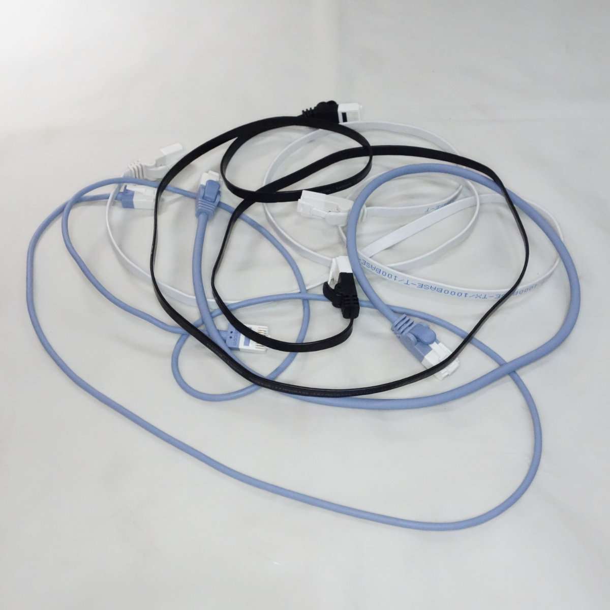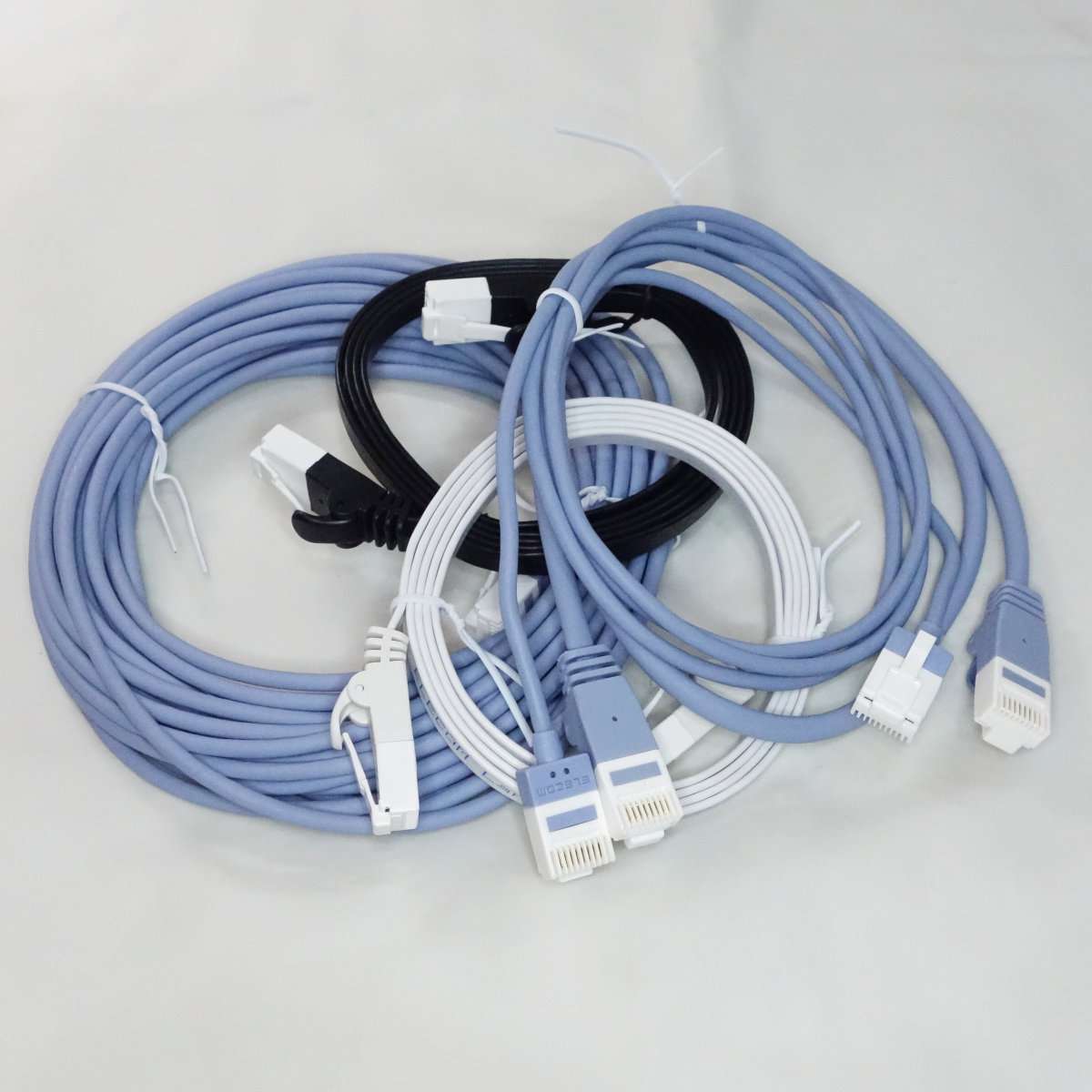 こちらはフラットケーブルで通称きしめんケーブルと呼ばれるタイプです。こちらは1mでもそれほど取りましは関係ないのでONU(光回線の終端装置)と無線LANルーターを繋ぐのに使用します。フラットケーブルはノイズに弱いと言われる事もありますが、通常の家庭で使用する分にはまず問題は出ることはないと思います。