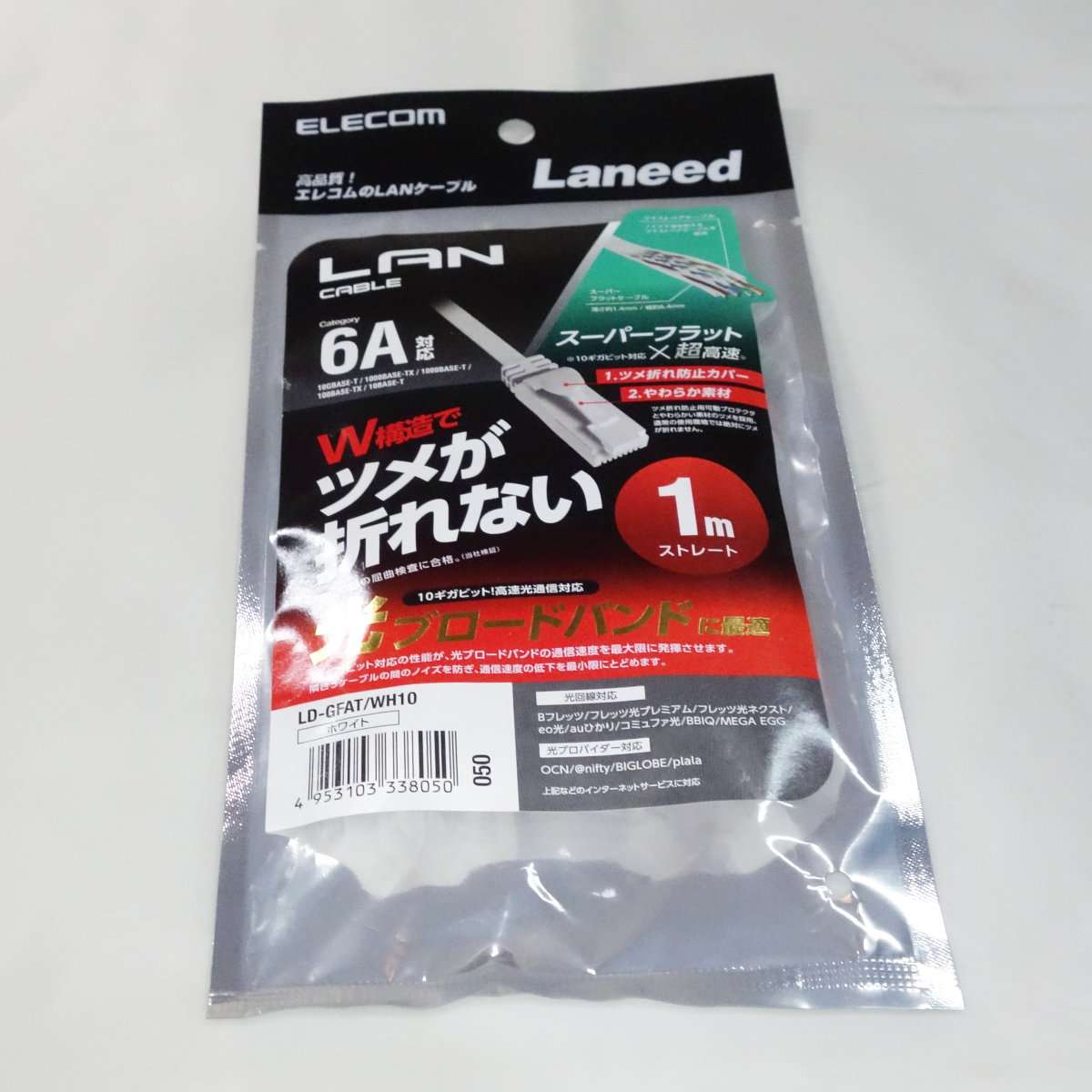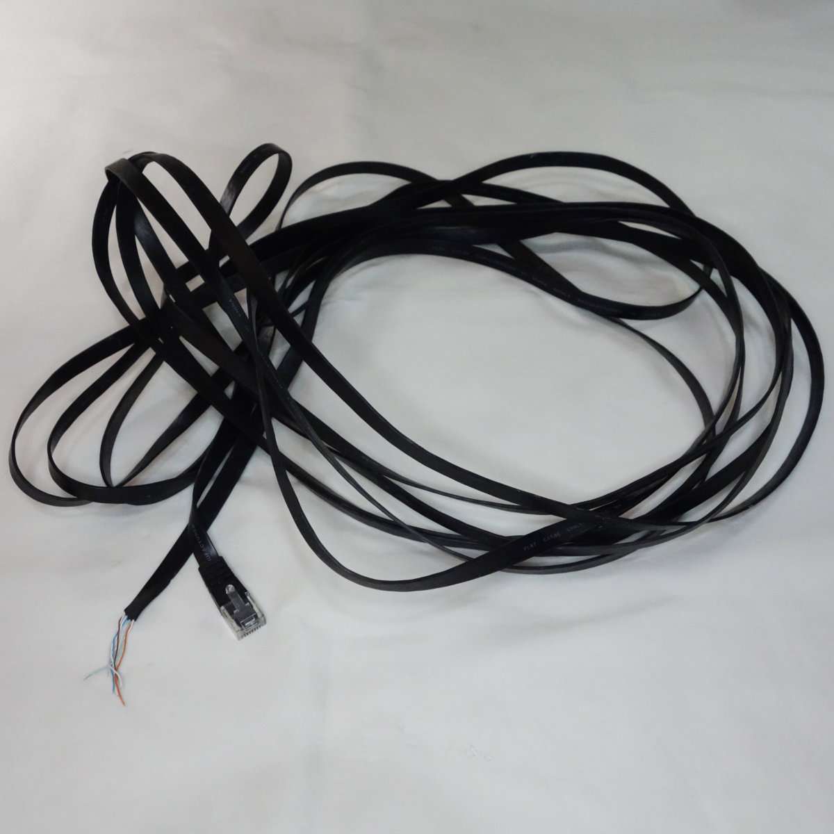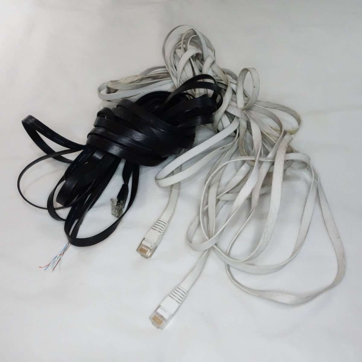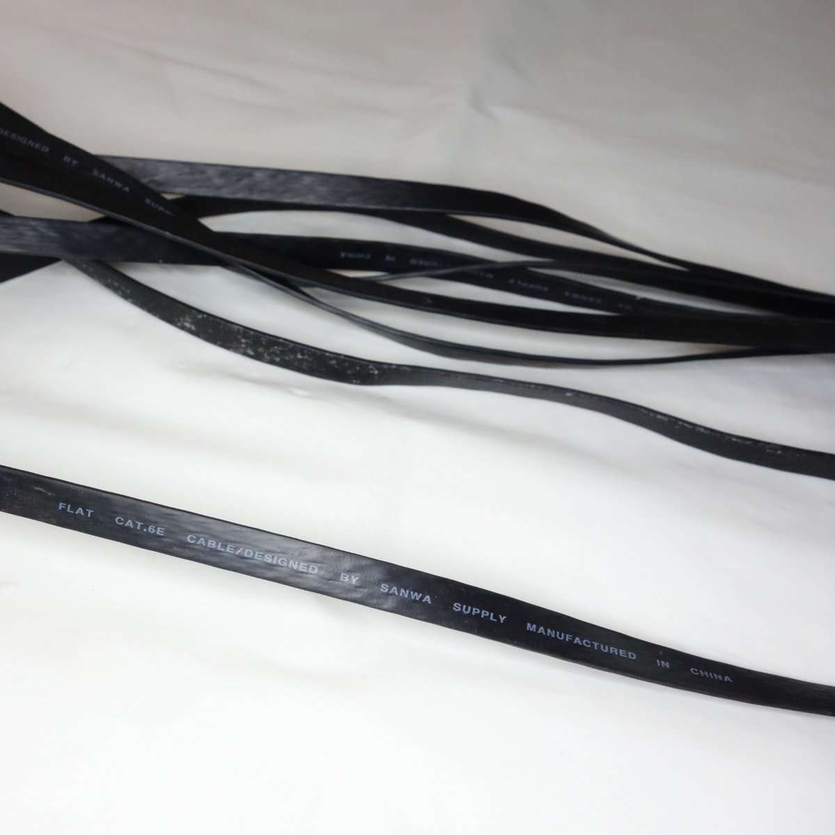 こちらはフラットケーブルで通称きしめんケーブルと呼ばれるタイプです。こちらは1mでもそれほど取りましは関係ないのでONU(光回線の終端装置)と無線LANルーターを繋ぐのに使用します。フラットケーブルはノイズに弱いと言われる事もありますが、通常の家庭で使用する分にはまず問題は出ることはないと思います。