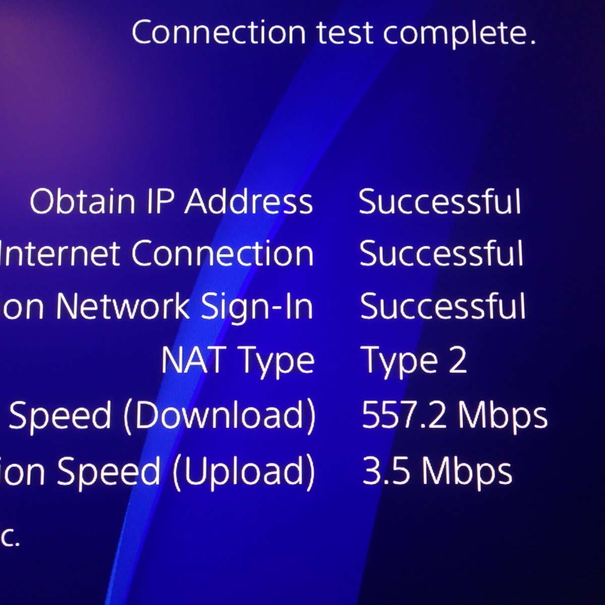 MacとWindows PCは無線接続にしいるため有線接続のPS4での接続を確認します。無事ネットに接続してダウンロードスピードも557Mbpsを記録したので問題ありません。アップロードは無線では300Mbps平均で出ているので相手側で帯域を絞っているのだと思います。PS5やXbox Series Xなどのゲーム機はダウンロードするサイズが100GB以上などと大きい場合があるので有線でより速く安定した接続をする事をおすすめします。