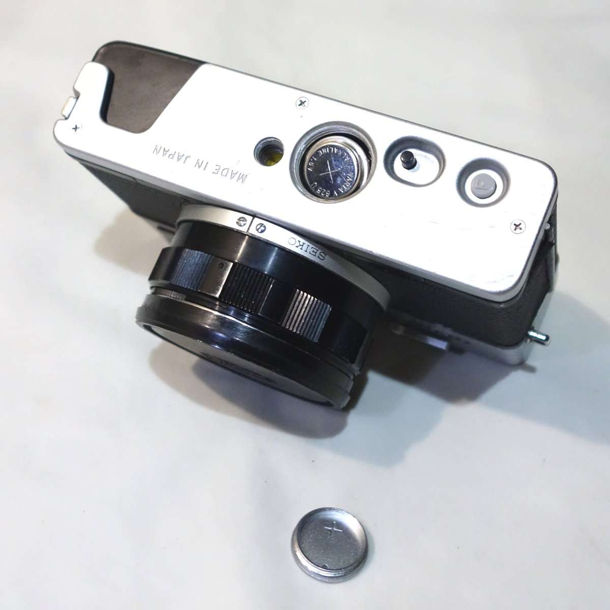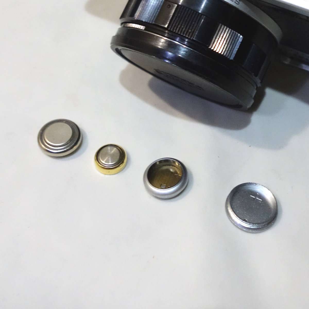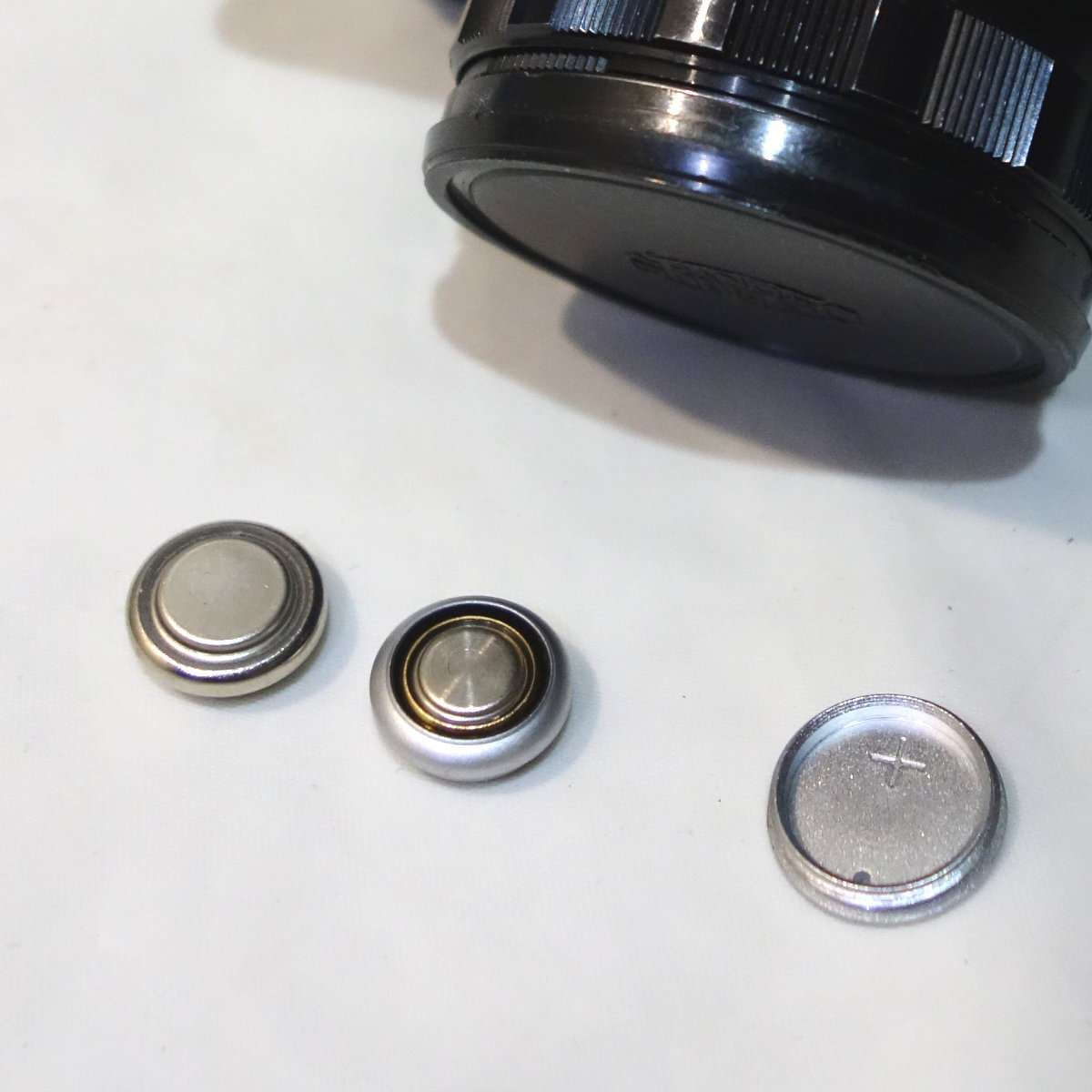 ボタン電池は極性がわかりづらく普通の単3電池などとは違い、突起がある方がマイナス、平らな方がプラスになっています。ほとんどのカメラがプラス側を蓋側になりますが、ミノルタXEなどマイナス(アース)を電池蓋にしてボディアースにするカメラも存在しますので、必ず説明書やカメラの表記で確認して下さい。クラシックカメラですと最悪この極性を間違っただけで壊れる可能性があります。