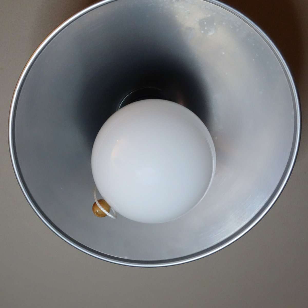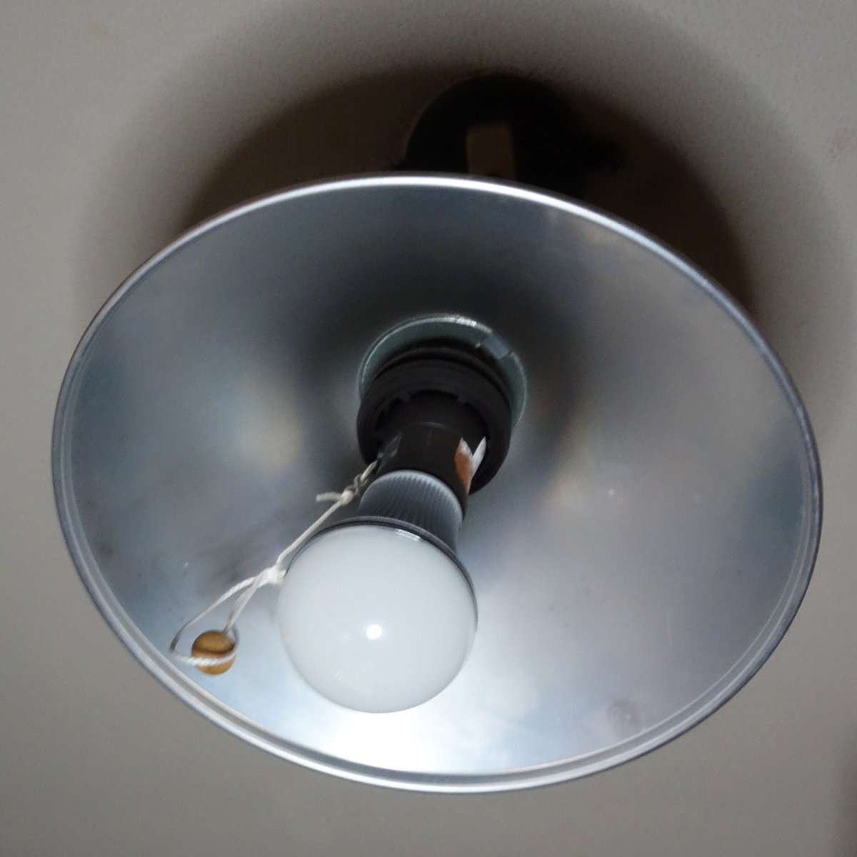 アルミのランプシェードにまだシャープのLED電球が付いています