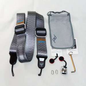 今回選んだのはpeak design slide lite(ピークデザインスライドライト)でカラーはアッシュになります。スライドライトは通常の横吊りだけでなく斜めがけやカメラの縦吊りに対応してそのスタイル変更をスピーディに出来る面白いシステムのストラップです。ストラップの取り付けもアンカーリンクスと言う独自の形状でストラップの取り付け取り外しがとても簡単になっています。スライドライトは細めのタイプでスライドとより大きめのカメラとレンズ用のストラップも出ています。よりコンパクトなAPS-C機器やコンパクトデジカメ用にはリーシュと言う細いタイプのストラップもあります。