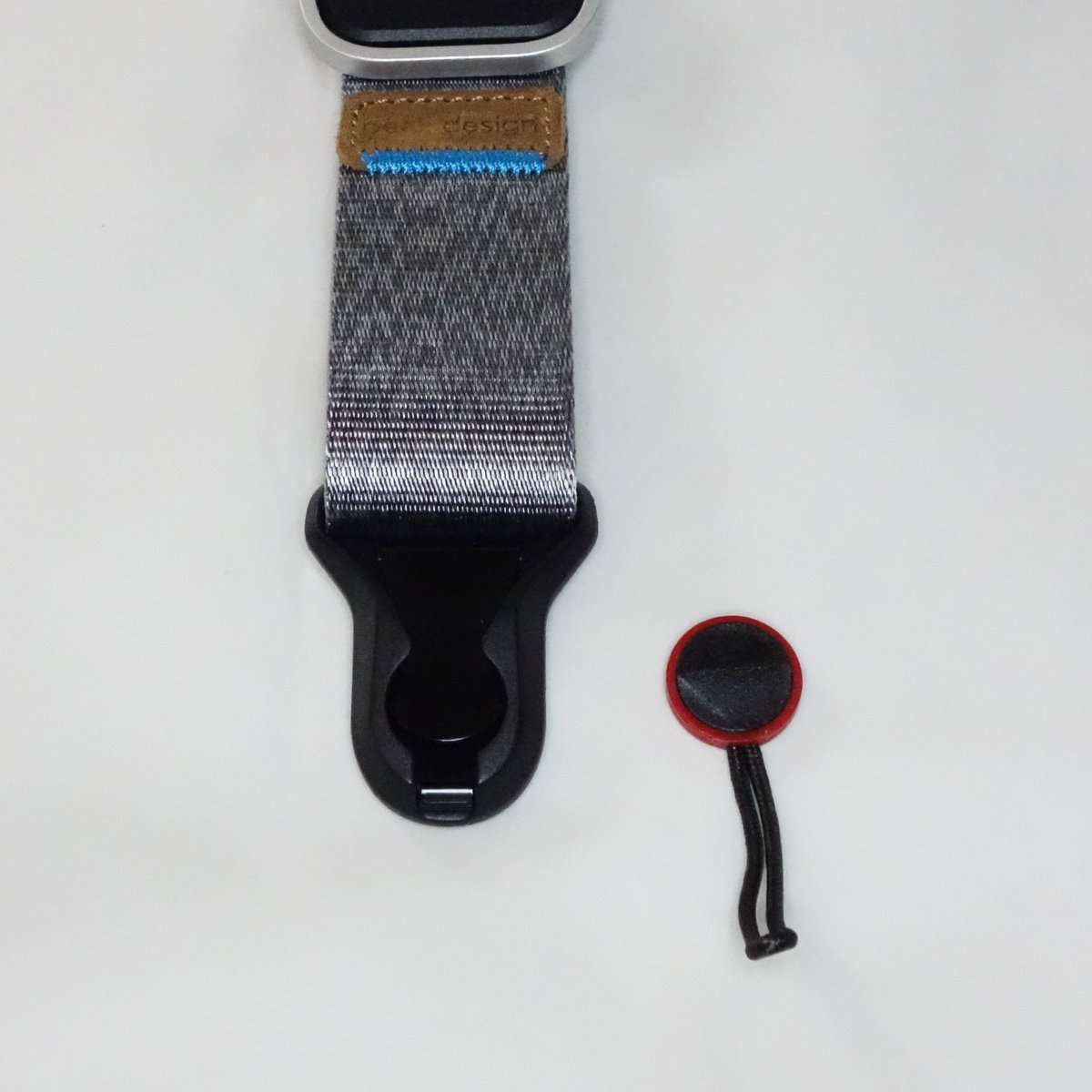 ピークデザインのストラップの最大の特徴はこのアンカーリンクスでしょう。アンカーコネクター(丸と紐が付いたパーツ)をカメラ側に取り付けしてアンカーにストラップの先端を取り付けるとストラップが固定されます。金属のストラップリングを使用しないのでカメラ側に傷がつきづらくよく考えられています。このアンカーリンクスのシステムを通常のストラップに取り付けるパーツも販売されています。アンカーと記載しますが、海外のオフィシャルサイトによると紐の付いたパーツはアンカーコネクターと表記されています。