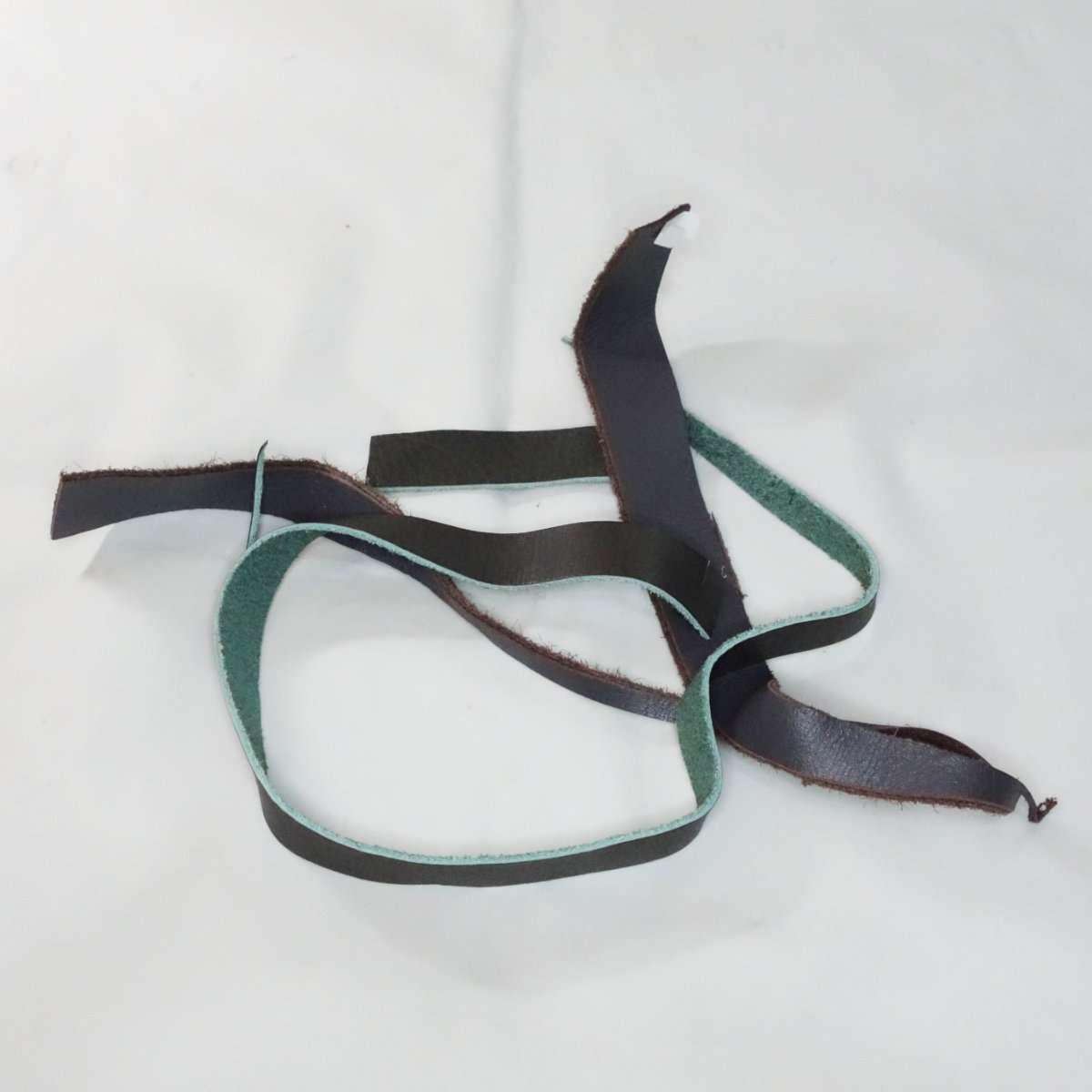 ストラップリングガードはいくつも制作しましたが、今回のピークデザインのストラップリングは小型なのでそれに合わせて小さめの物を作る事にしました。細めのストラップを作った時に余った革の切れ端を切り抜く事にしました。大量に作るわけでもないので型紙も起こさず目分量で切り抜きました。道具を用意してから10分前後であっさりと完成したのでこれでストラップの取り付けの用意が完了しました。
