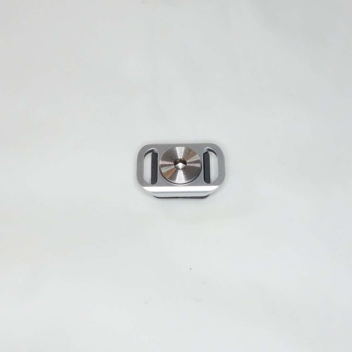 ピークデザインがすすめるストラップの斜めがけでカメラを縦吊りにするためには三脚穴にもアンカーを取り付ける必要があります。本体に付属しているアンカーマウントと言う三脚穴へ取り付ける専用パーツを三脚穴にネジ止めします。パーツ自体は6.1gととてもコンパクト軽量になっています。ほぼ全ての三脚穴が1/2ですが、Rolleiflexなどクラシックカメラや古い機種で三脚穴が大きくてリングの取り付けネジが合わない場合は3/4を1/2に変換するアダプターを使用しましょう。三脚穴のサイズ変換アダプターはたいていどこの大手量販店でも扱っています。