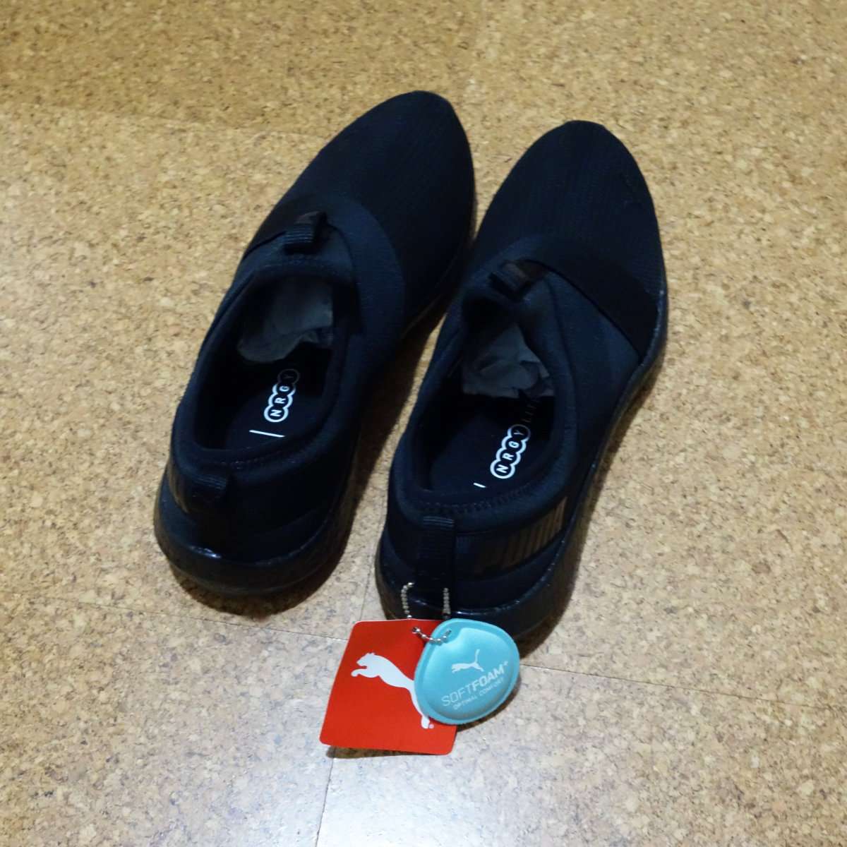 今回購入したのはPUMA NRGY Lite Slip Onでカラーはブラックになります。スリッポンも人気があるようで、以前とは違い種類(特に女性用)が増えています。靴やスニーカーの場合はスリッポンと呼ばれますが、なぜかバイクのエキゾーストなどは同じスペルでもスリップオンと呼ばれています。