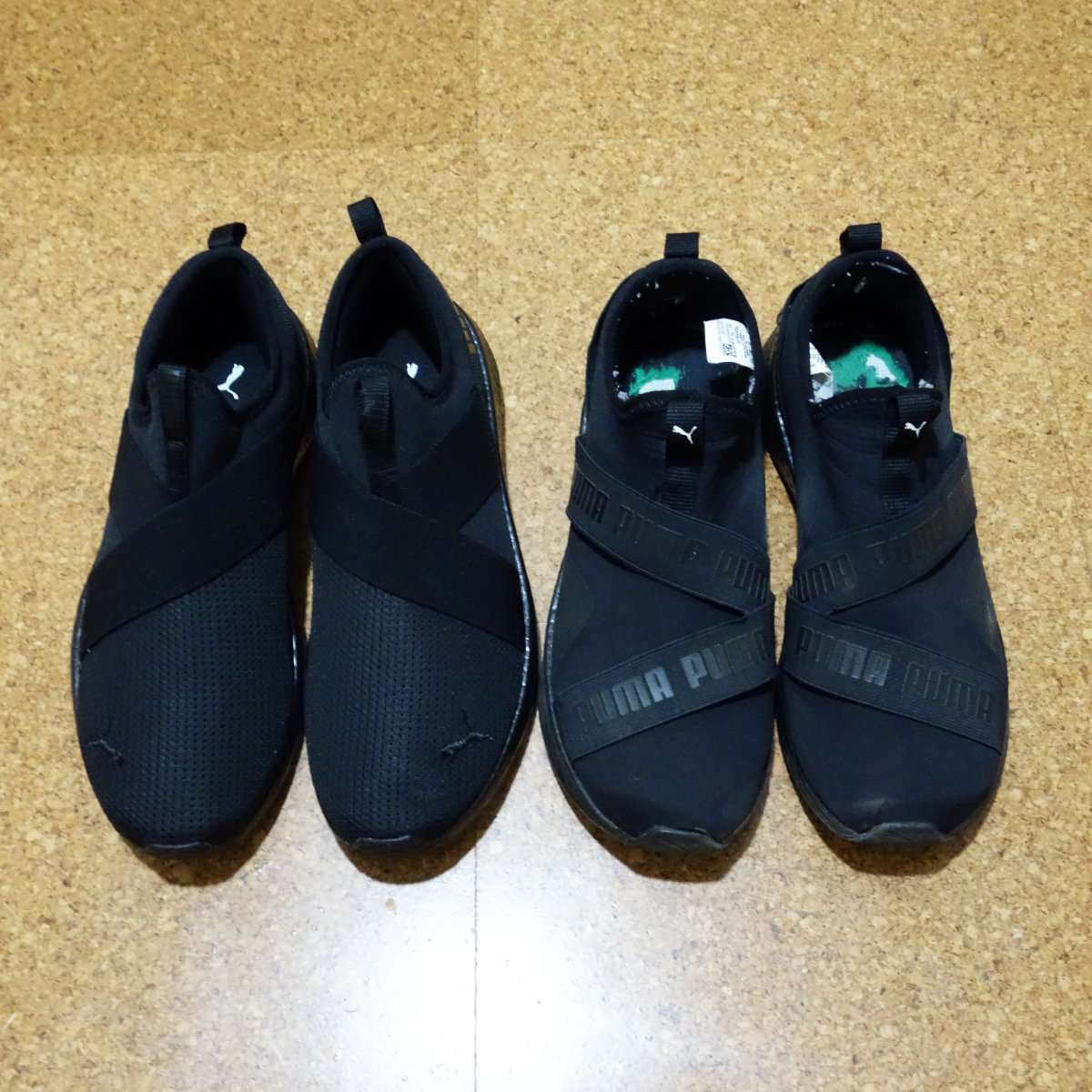 旧モデルとは違い伸縮しづらい通常のスニーカーと同様の作りになり全体的に細身に感じるようになっているので、サイズは通常のプーマのスニーカーより1サイズ(0.5cm)大きめにした方がよいです。サイズが合わず歩きにくい靴は健康にもよくないので、サイズ感が心配の方はストアでまず履いてみるのがよいでしょう。