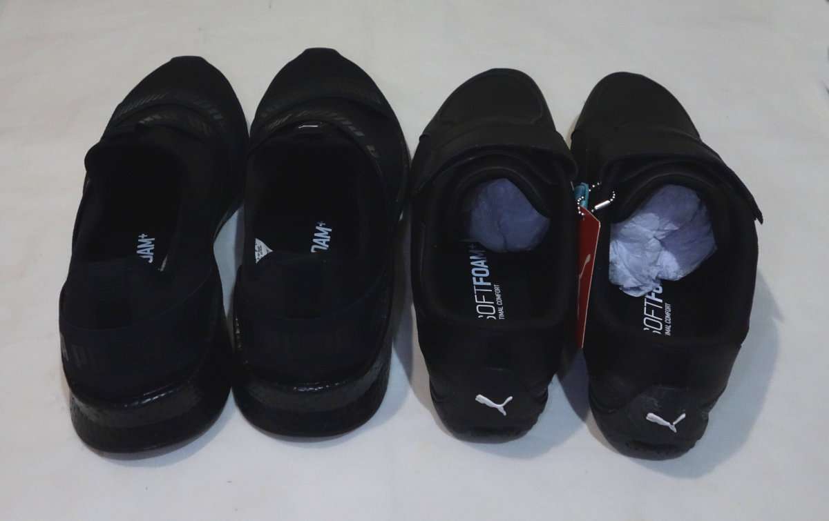 PUMA MOSTROは非常に履きやすく今まで特に他のスニーカーと比べる事もなく、履きつぶしたタイミングでモストロだけを10足前後を買い替えて続けてきました。モストロはベルクロで紐を結ぶ必要おなく履き心地もよいものの、つま先の外側のゴムの付け根部分が剥がれてくる問題がありこれは最後まで解消されずでした。モストロとスタースリッポンを比べてみるとモストロの方が履きつぶしたのもあり横幅が若干広い感じです。スリッポンの方は伸縮性があるので履くと足の形に変形してフィットします。実際にはモストロと言う商品はまだあるのですが、このタイプのデザインではなくったと言うのが正しいです。