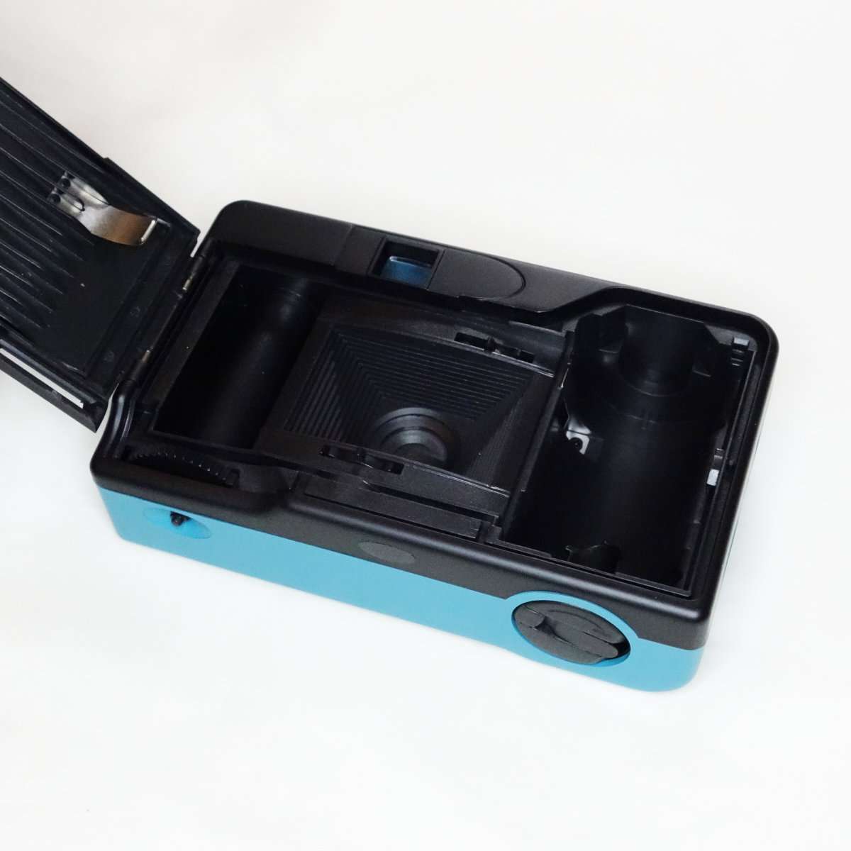 カメラはマットな質感でトイカメラの部類のなかではかなり作りがよいです。フィルムケース側に親指を載せるサムレスト部をへこませていたり、左手でフィルムをチャージしてそのまま右手でシャッターが押せる使い勝手にもアイデアが詰まった作りになっています。