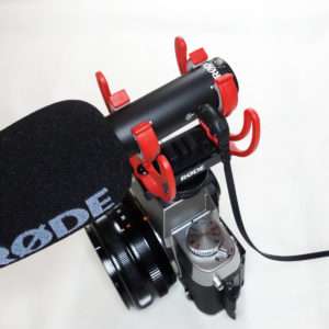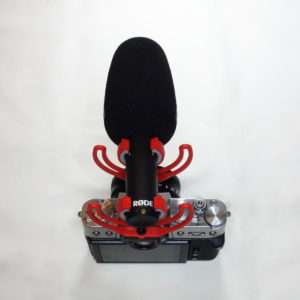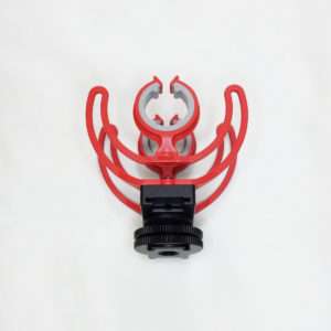 RODEのマイクの特徴が赤いショックマウントです。前後2段式で揺れには強い作りですが、強い力をかけると壊れると思われるので持ち運ぶ際にはカメラバッグや専用のケースに入れた方がよいでしょう。