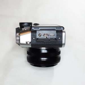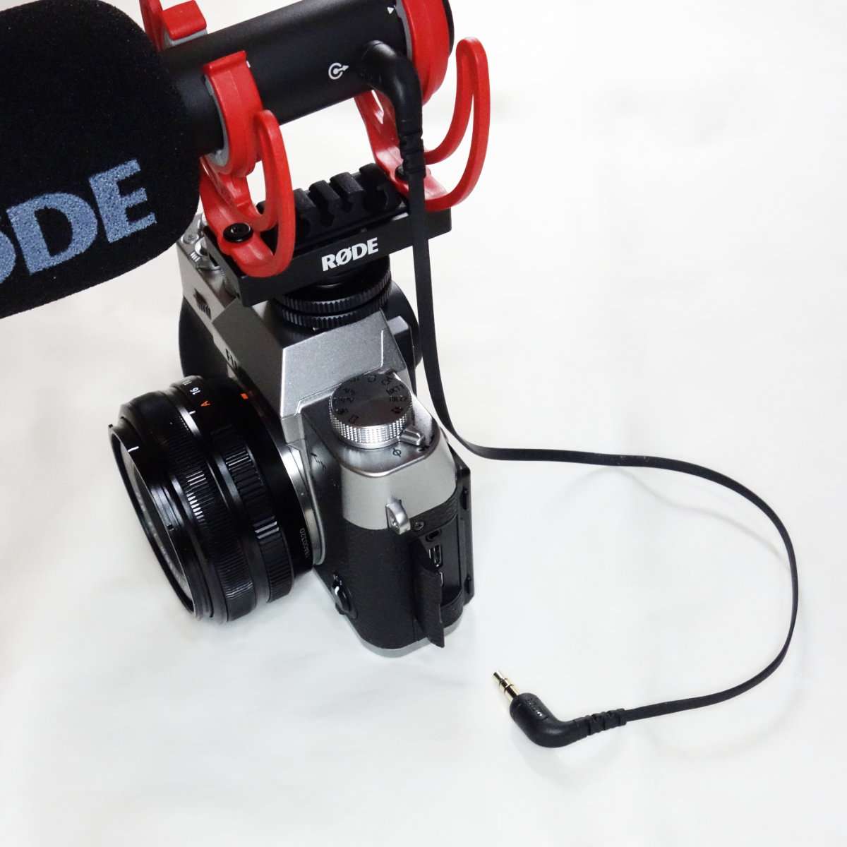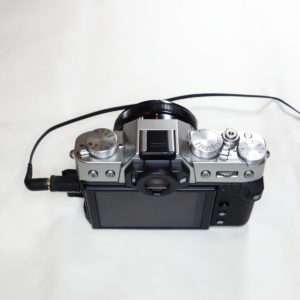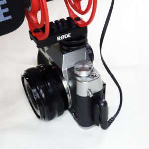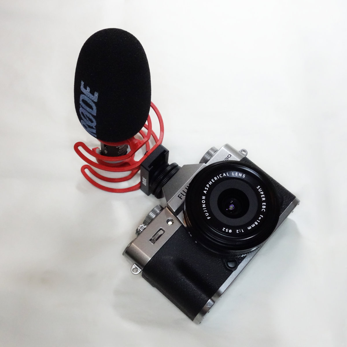 マイクがセットアップ出来たのでカメラに取り付けます。カメラはフジフィルムX-T30 IIとレンズはXF 18mm F2 Rの組み合わせを使用します。X-T30 IIは4K log動画も撮れる優れたミラーレスカメラです。ホットシューに取り付けるので別途取り付けてあるホットシューカバーを取り外します。