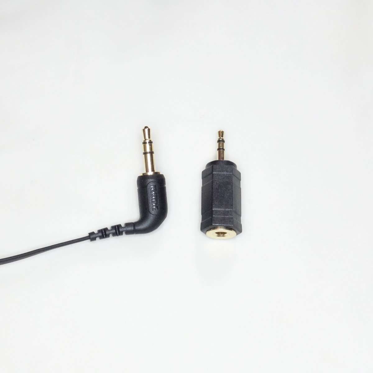 RODE付属のケーブルに2.5mmアダプターを取り付けてみます。ここで端子がジャックにロックされればほぼ問題ないはずですが、プラグ類が壊れている可能性がゼロではないのでかならず複数のアダプターで動作確認をしましょう。