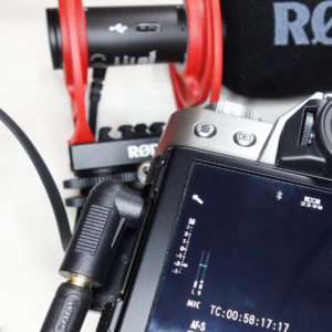 デジタルカメラの動画撮影でVideomic Go IIを使用するには付属の3極の3.5mmケーブルを使用する必要があります。ほとんどのデジカメのマイク端子はグリップとは逆側についているのでマイクの3.5mm用ジャックも同じ側についています。カメラのホットシューではなくカメラリグやジンバルのグリップや本体などに取り付ける場合は付属のケーブルだと長さが足りなくなる場合があるので、その時は別途3極のケーブルを用意しましょう。