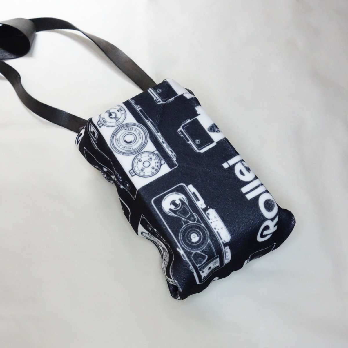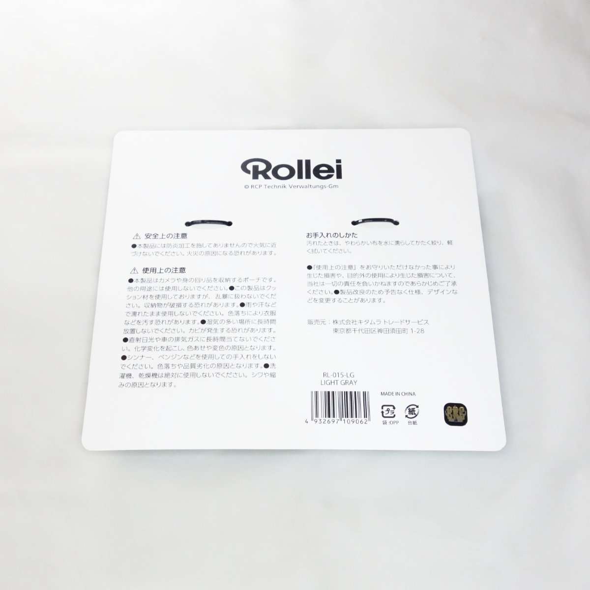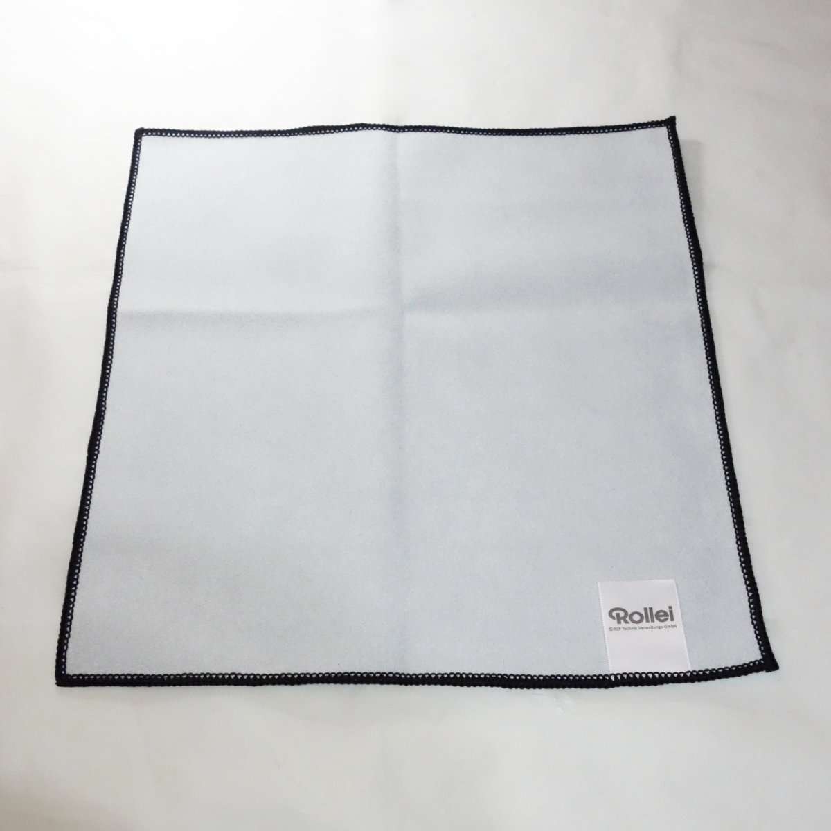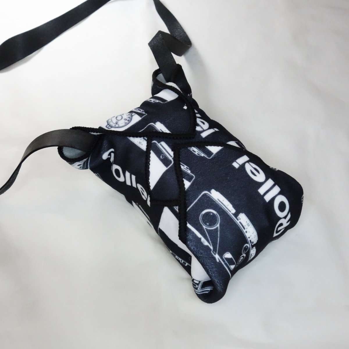 まず最初にローライ35がプリントされたコンパクトカメラ用ポーチのグレー(RL-015-LG)とカメララップのサイズ30cm x 30cm(RL-012M-BK)です。Rolleiflex柄のグッズもありますが、使用されたのが露出計内蔵のモデルでセレン部分がイラストになっていたためローライ35の方を選びました。ポーチは首からかけられるシンプルなもので、カメララップはピタット!くっつくカメラクロスの表記通りに紐やゴムがなくてもラップクロス同士がくっつく面白い作りです。