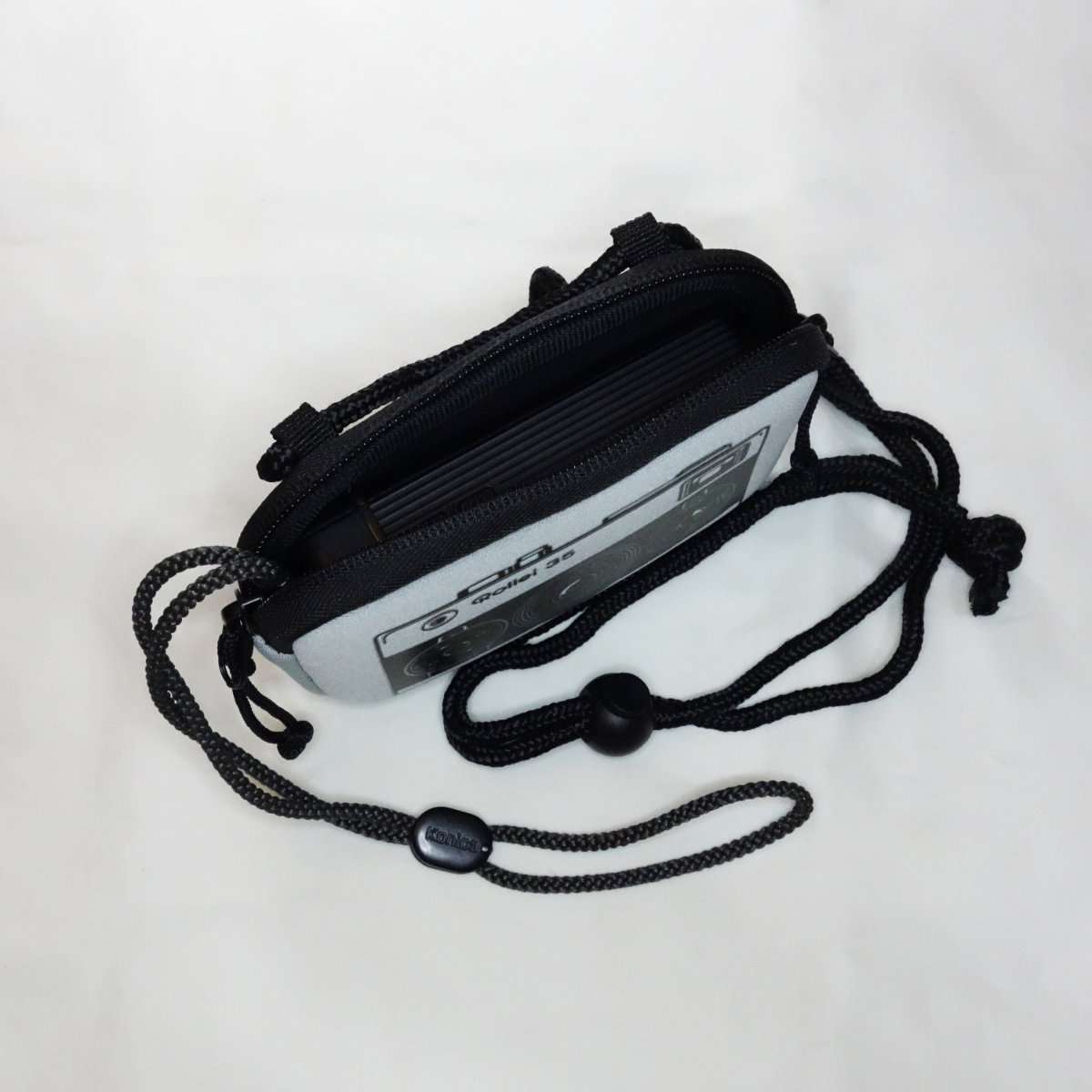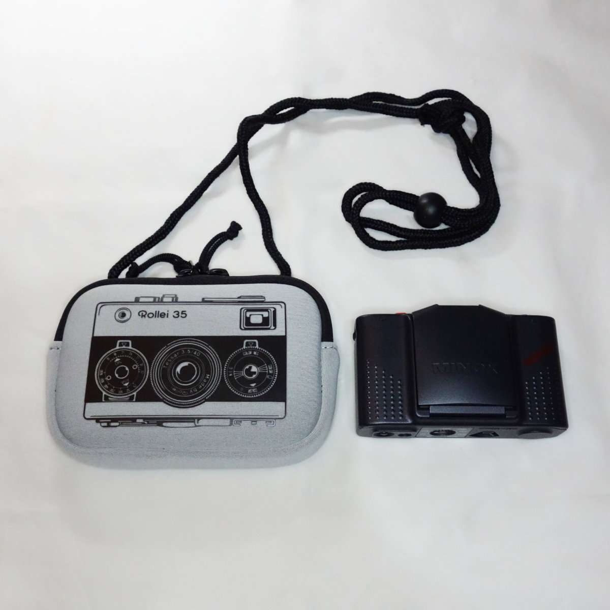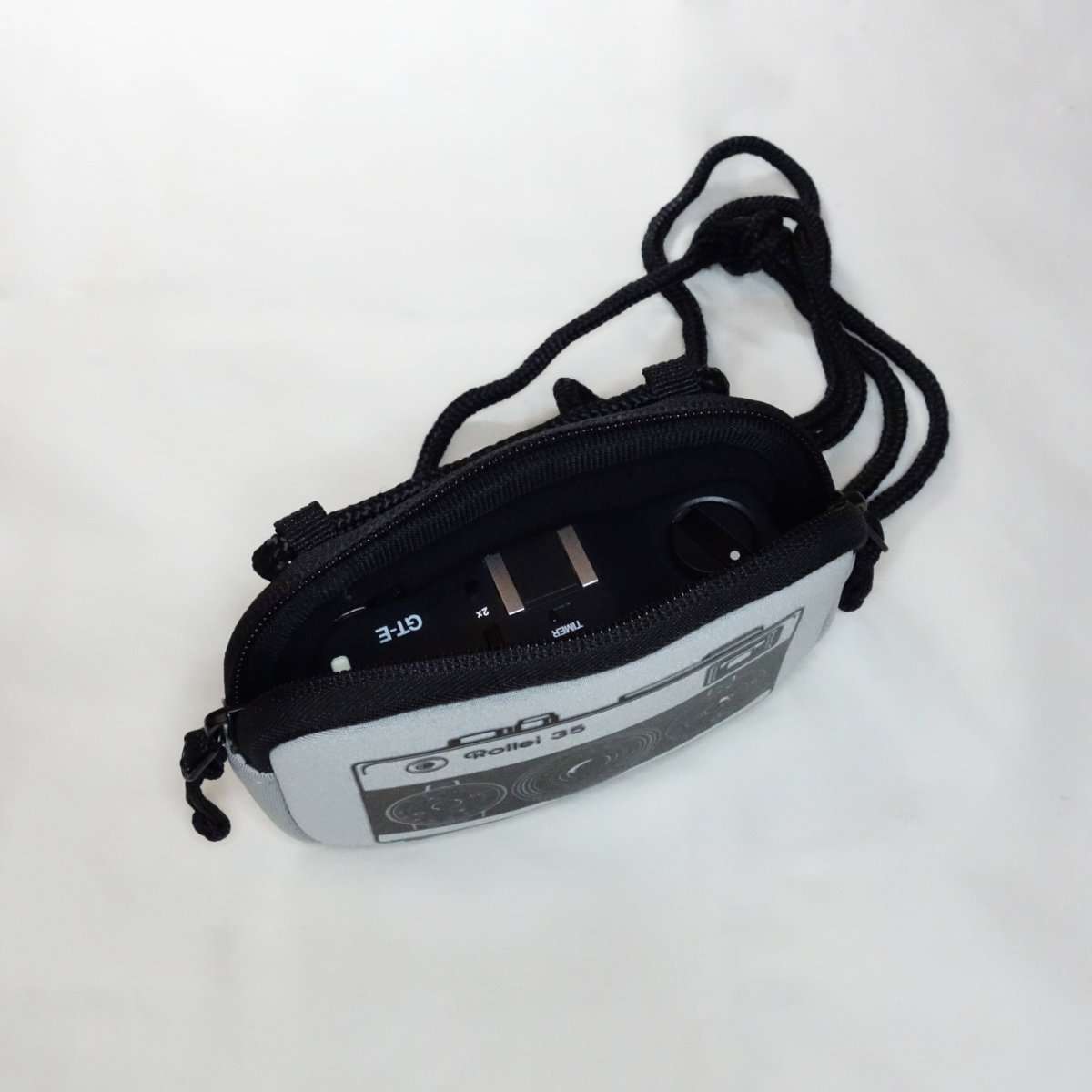 MINOX 35GT-EをRollei公式ポーチに入れてみます。MINOX純正のケースよりローライのポーチは大きいのでMINOX 35GT-Eは楽勝で入ります。ポーチに厚みがないので少し膨らみますが、ポーチのクッション性は高いので手持ちで運ぶだけでなく旅行でスーツケースに入れるのにも良さそうです。