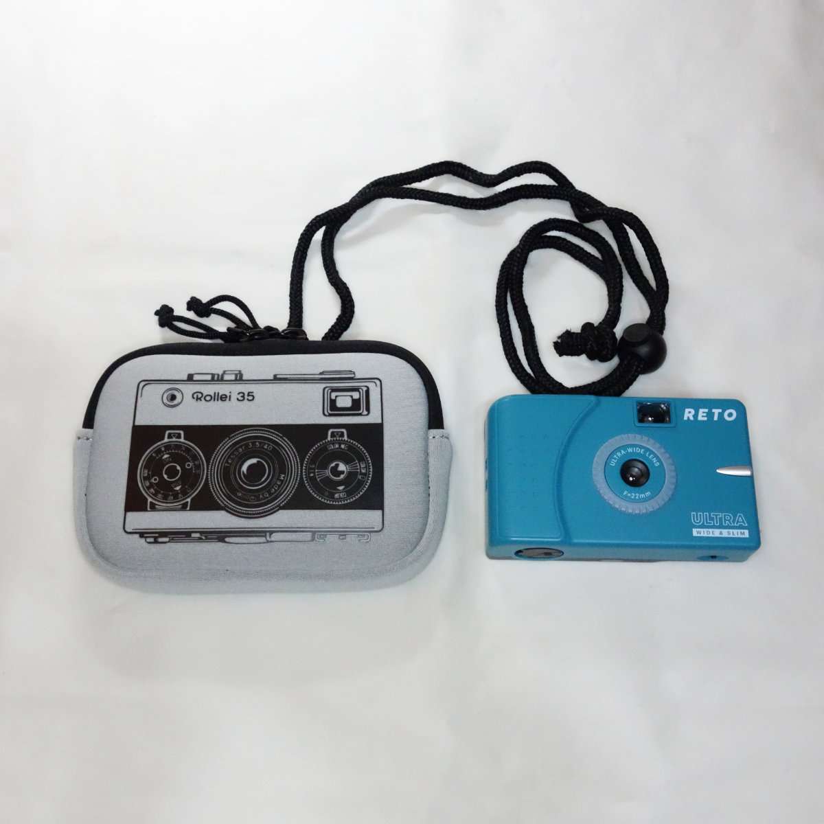超広角レンズ搭載でパンフォーカスなので撮るだけに集中出来る面白いカメラのRETO Ultra Slim & Wideです。フィルム交換が可能な写ルンです的なトイカメラの部類ですが、素晴らしくく機能的なカメラで、初めてのフィルムカメラとしてだけなく誰にも使ってもらいたいカメラです。RETOにもポーチが付属しますが、ペラペラでカメラを守ると言うよりはレンズに傷がつかなければよい程度で、クロス生地なのでOakleyのサングラスのようにポーチでレンズやファインダーを磨いてくれと言う事なのでしょう。