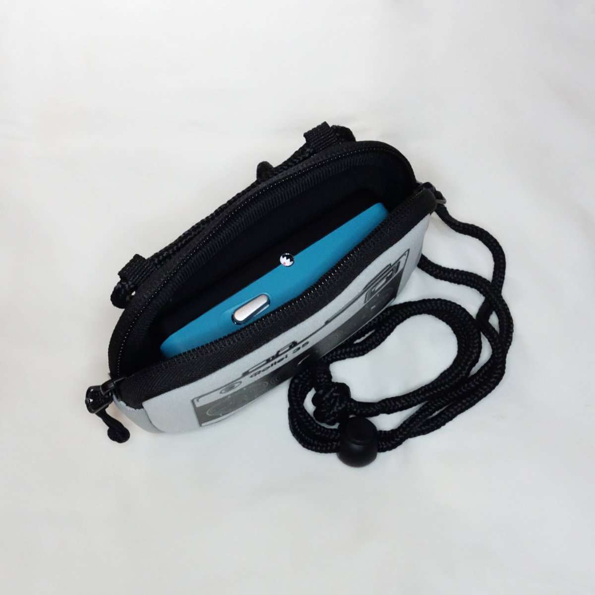 荷物を入れるポーチとしても使用出来ますが、カメラを持ち運ぶためにネックストラップが取り付けられています。ストラップは長さを調整出来るので短い状態で持ち運ぶ事も可能です。