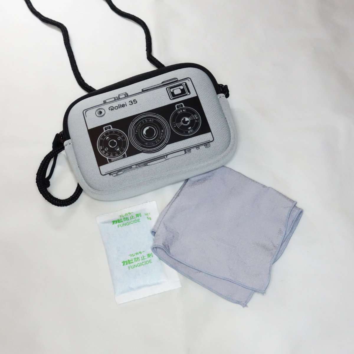 ローライ公式のカメラポーチはクッション性も高くコンパクトカメラであれば幅広く使用ができますし、カメララップは生地同士がくっつき簡単に綺麗に包めるのでローライ35用にしなくてもカメラグッズとして優れています。ポーチとラップ以外にもTシャツや帽子(ハット)などもあり、柄もRollei 35だけでなくRolleiflexもあり気がつくと増えてしまいそうな魅力がありカメラ好きな方へのプレゼントにも最適です。