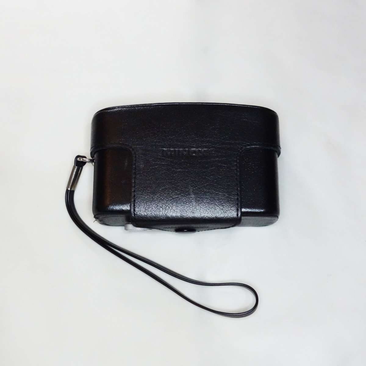 Big MiniはMINOX 35GT-EやRETOとは違い全自動カメラなため電池とフラッシュが内蔵なのでサイズが少し大きくなりポーチが使えるか気になるところですが、あっさりとポーチに入りました。Big Miniはハンドストラップを取り付けてあるので、ポーチからストラップを出した状態でもポーチを閉じられるか試しました。