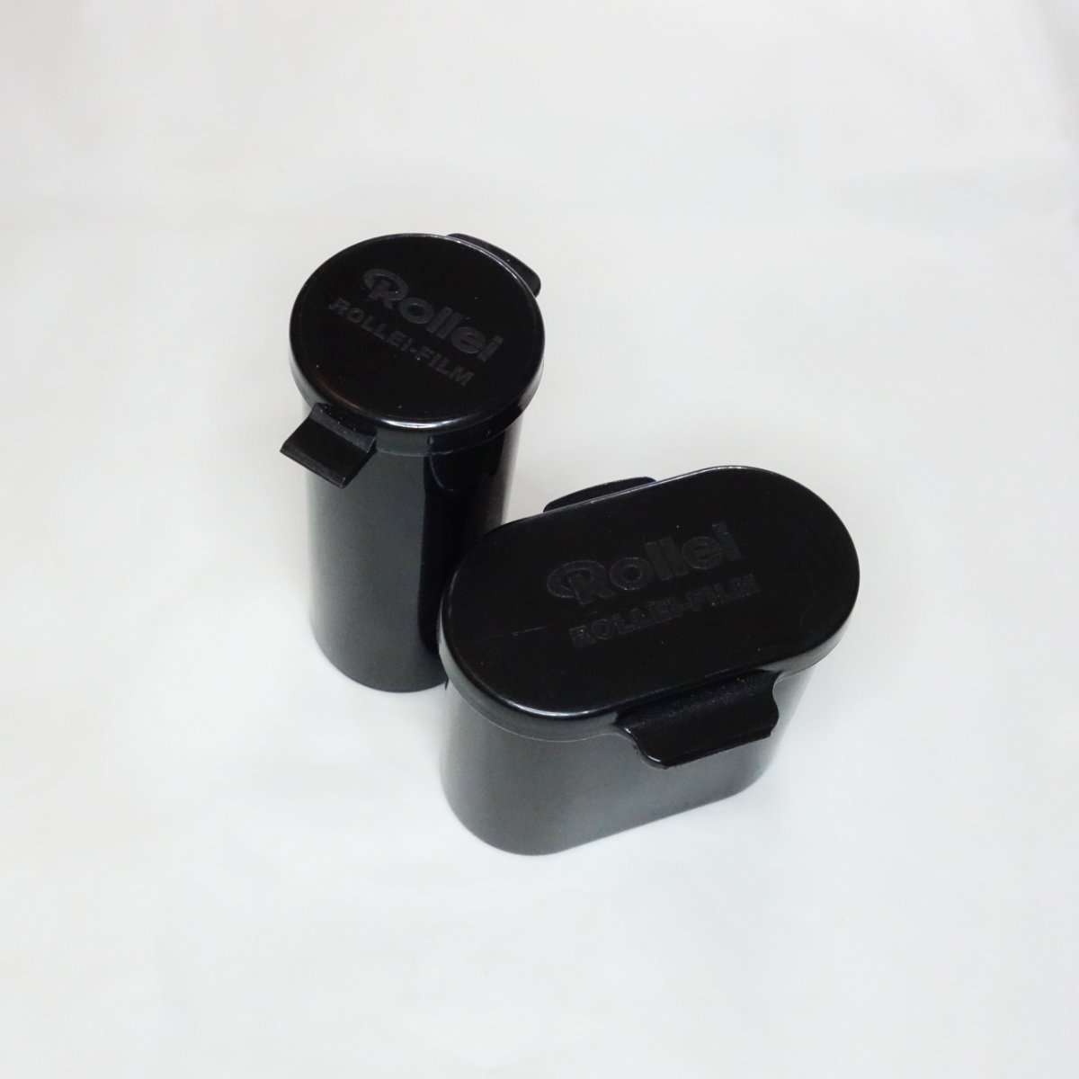 ローライはフィルムも長く製造しているのでRolleiのロゴ入りケースも出していて、ローライファンとしてはRollei 35やRolleiflexに合わせてフィルムケースも使っています。特に120サイズの中判フィルムはシートで巻かれているだけで晴天時の屋外だと感光していしまう可能性があるのでケースは必須です。120フィルムのケースは蓋の折返し部分が大きいので切り取ってしまった方が使いやすくなります。コダックなどのフィルムケースはクリアでフィルム名が見えて便利ですが遮光を考えるとFomapanのケースのようにブラックが正しいです。