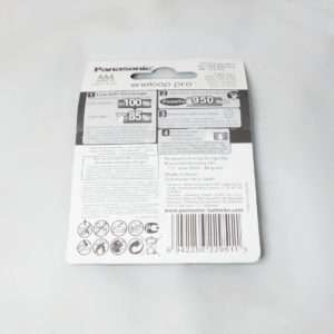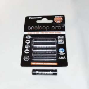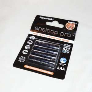 単4のエネループプロも4本セットでブラックボディにシルバーメタルのeneloop proのロゴになっています。エネループプロは通常版のエネループより容量が多くなっています。どちらも放電しづらいので防災グッズなどに使用するのに向いています。