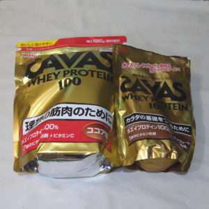 SAVAS WHEY PROTEIN 100(ザバス ホエイプロテイン 100)のココア味1050g、約50食分が安売りしていたのもあり一気に3袋まとめて購入してみました。ザバスのラインナップでは基本となるプロテインなので初めての場合やどれにするか迷っていたらこのプロテインで問題ないと思います。