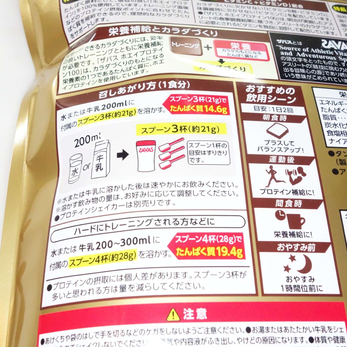 口に含むものですので内容をよくよんでおきましょう。必要なタンパク質の量やザバスのプロテインにはビタミンも多く含まれているので、サプリメントを併用している方はビタミンの取り過ぎになってしまう可能性がありますので必ず容量などを読んでから飲みましょう。