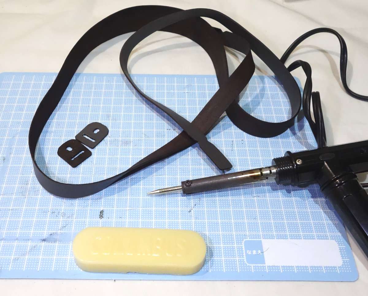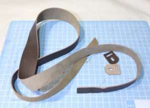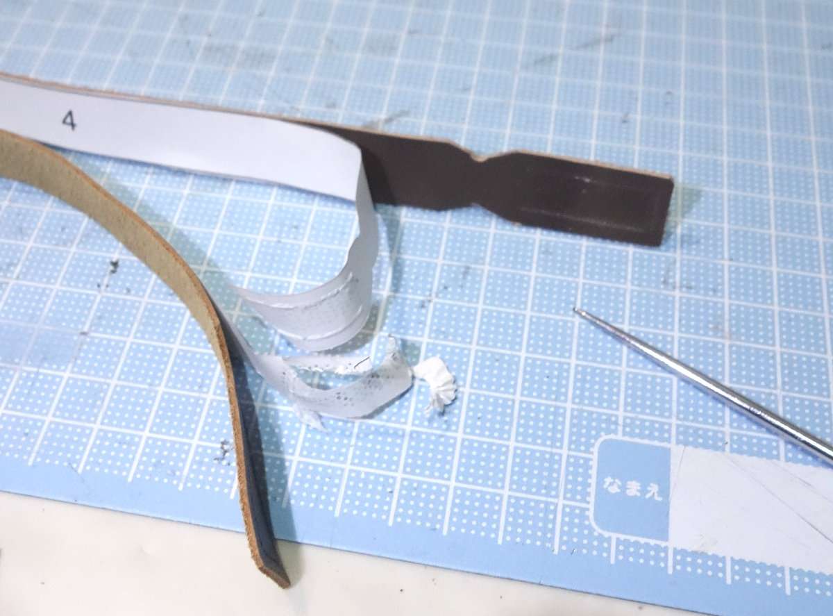 ストラップ本体と2つのストラップリングガードを切り抜いたら仕上げの工程の準備が完了です。この後の仕上げの工程で少しの段差などは修正出来るので、ナイフなどで切り直したりしない方がよいでしょう。