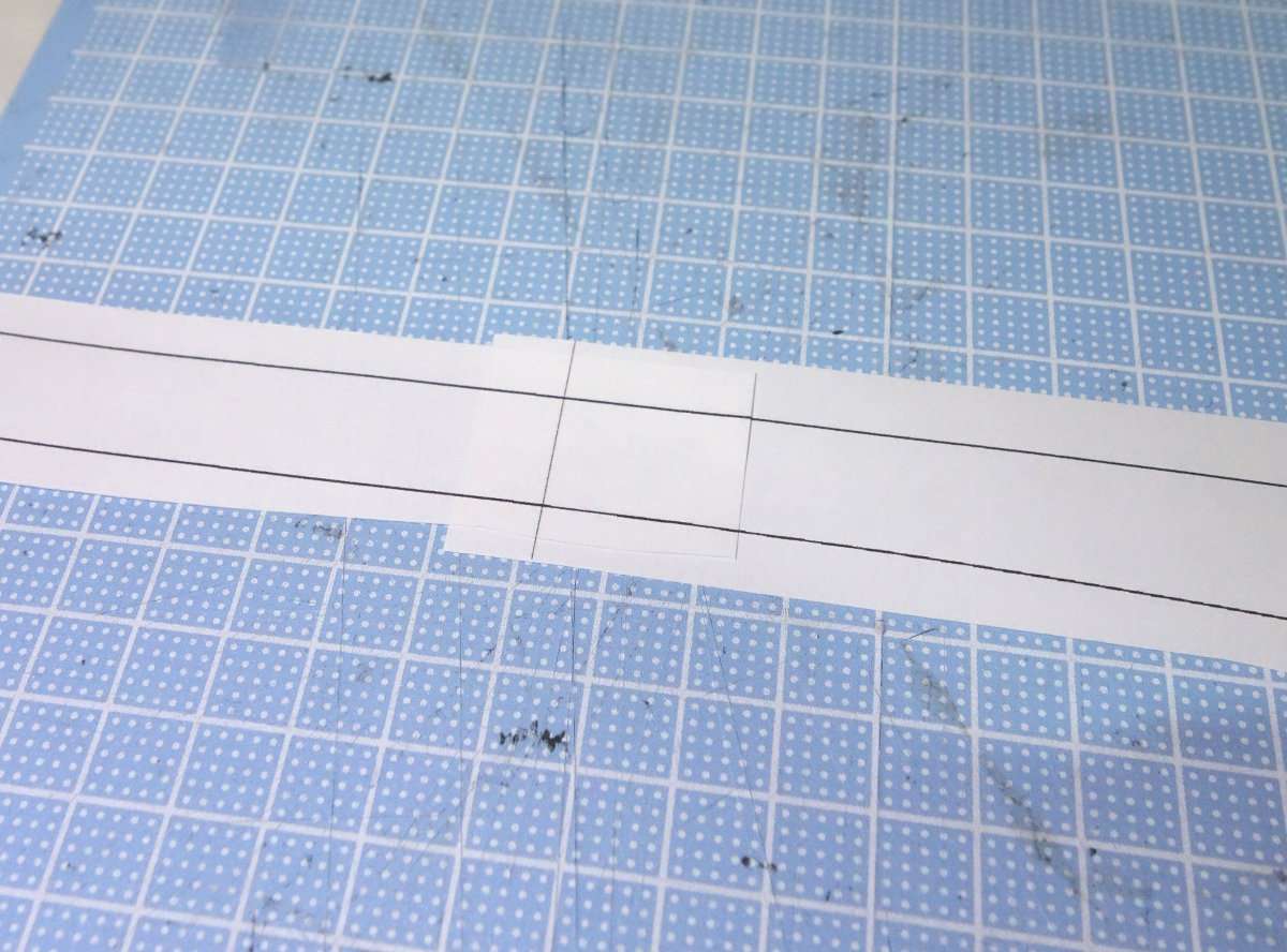 この工程では型紙を実際の形に切り抜くのではなく、革を切りやすいように余白分を残して切り取ります。組み立てはのりテープを使用すると簡単に型紙が完成します。