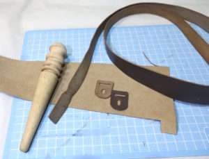 接着面の処理をしたら接着剤を薄く塗り半乾きの状態で革を折り返します。接着面には革の切れ端などのあて布をしてクランプをかけます。数時間で接着自体はされますが、出来れば24時間は接着剤の乾燥のために放置しましょう。