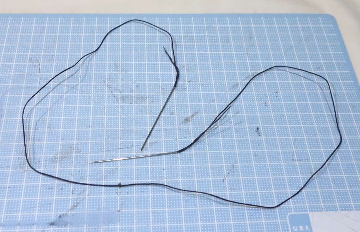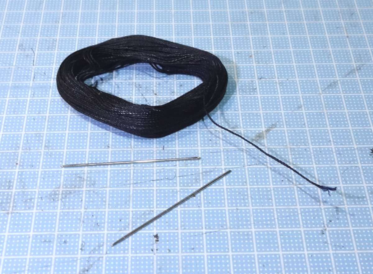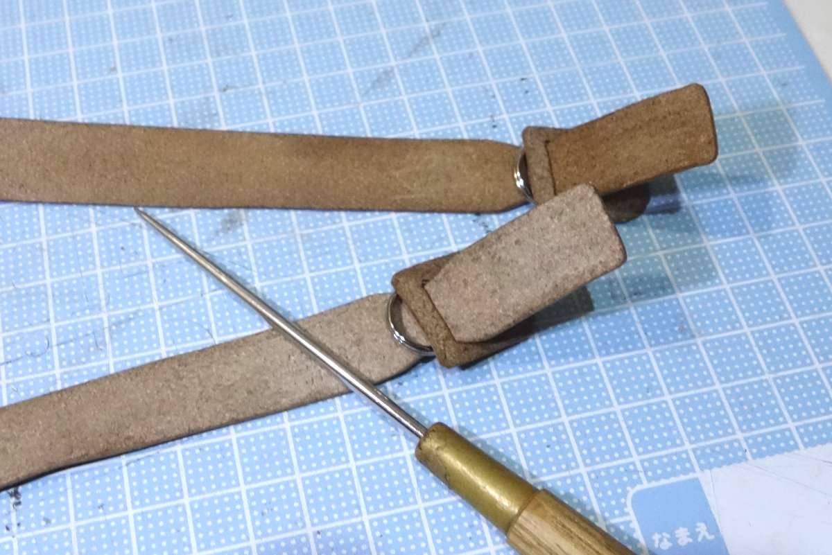 レザークラフトでは針に糸を通します。これにはレザークラフト用のやり方があり他のストラップを作った時の工程に詳しく書いてあるので参考にして下さい。