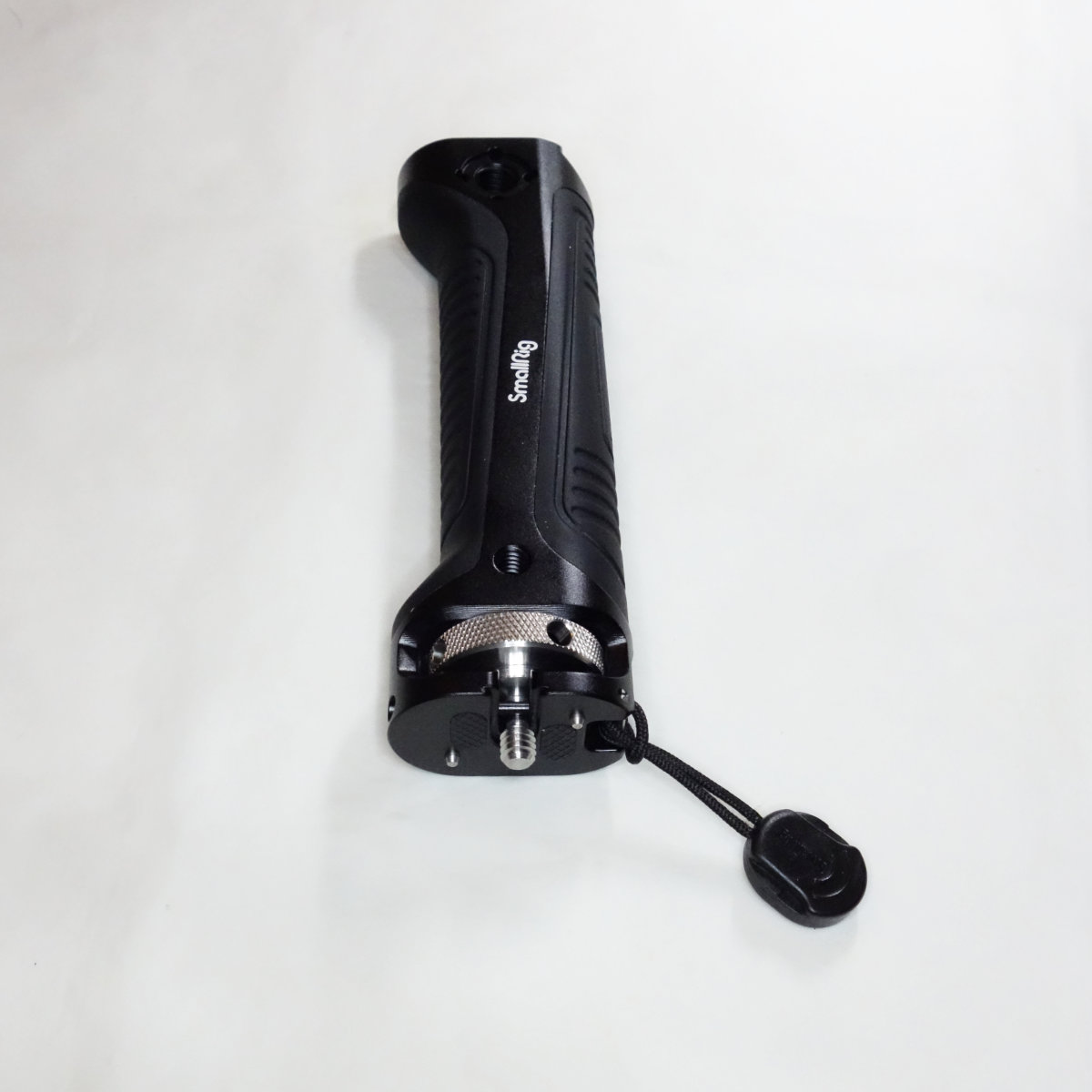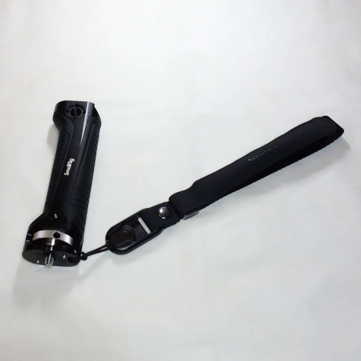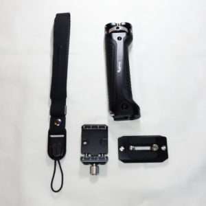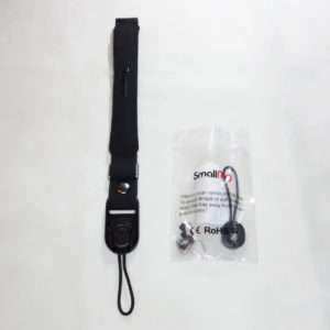 SmallRigのハンドルにはストラップ取付部があり重めの機材を載せる場合にネックストラップなどを取り付ける事が出来るようになっています。ジンバルが約1kgでハンドルやクイックリリースなどを追加してくとどんどん重量が増えるので落下防止にリストストラップを取り付ける事にしました。重さの軽減にはなりませんが、手が滑ってジンバルとカメラを落とす心配はかなり減ります。