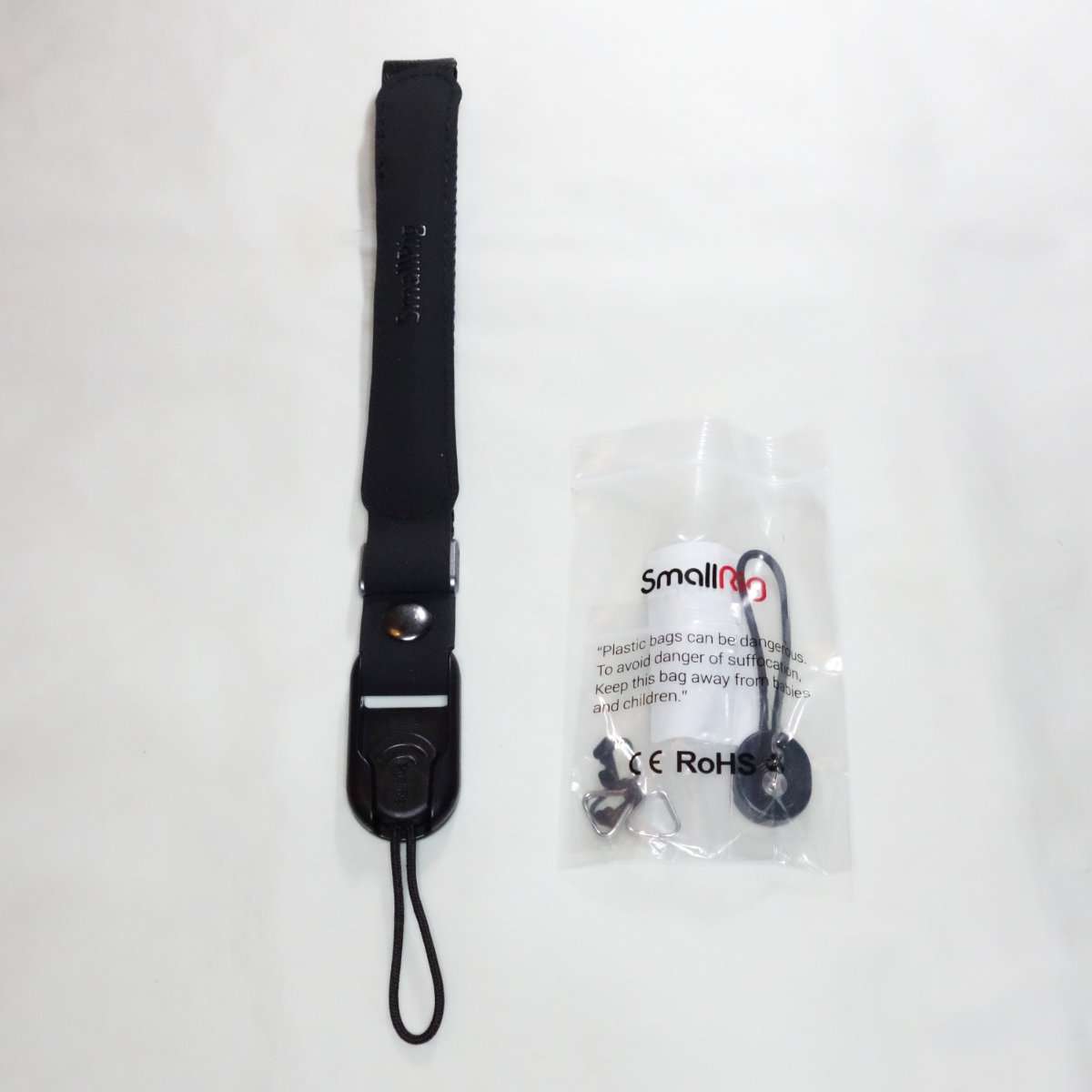 SmallRigのハンドストラップは頑丈な作りでコンパクトカメラ用のストラップよりかなり大きめになります。フルサイズミラーレスカメラでも使用可能なサイズで、アンカーの紐もかなり太いのでそのまま取り付けられるカメラは限定されます。