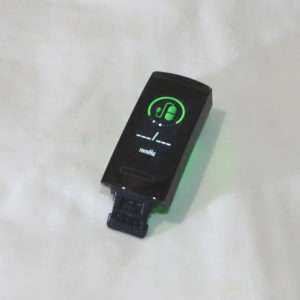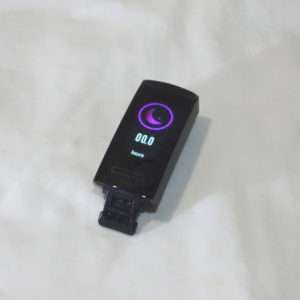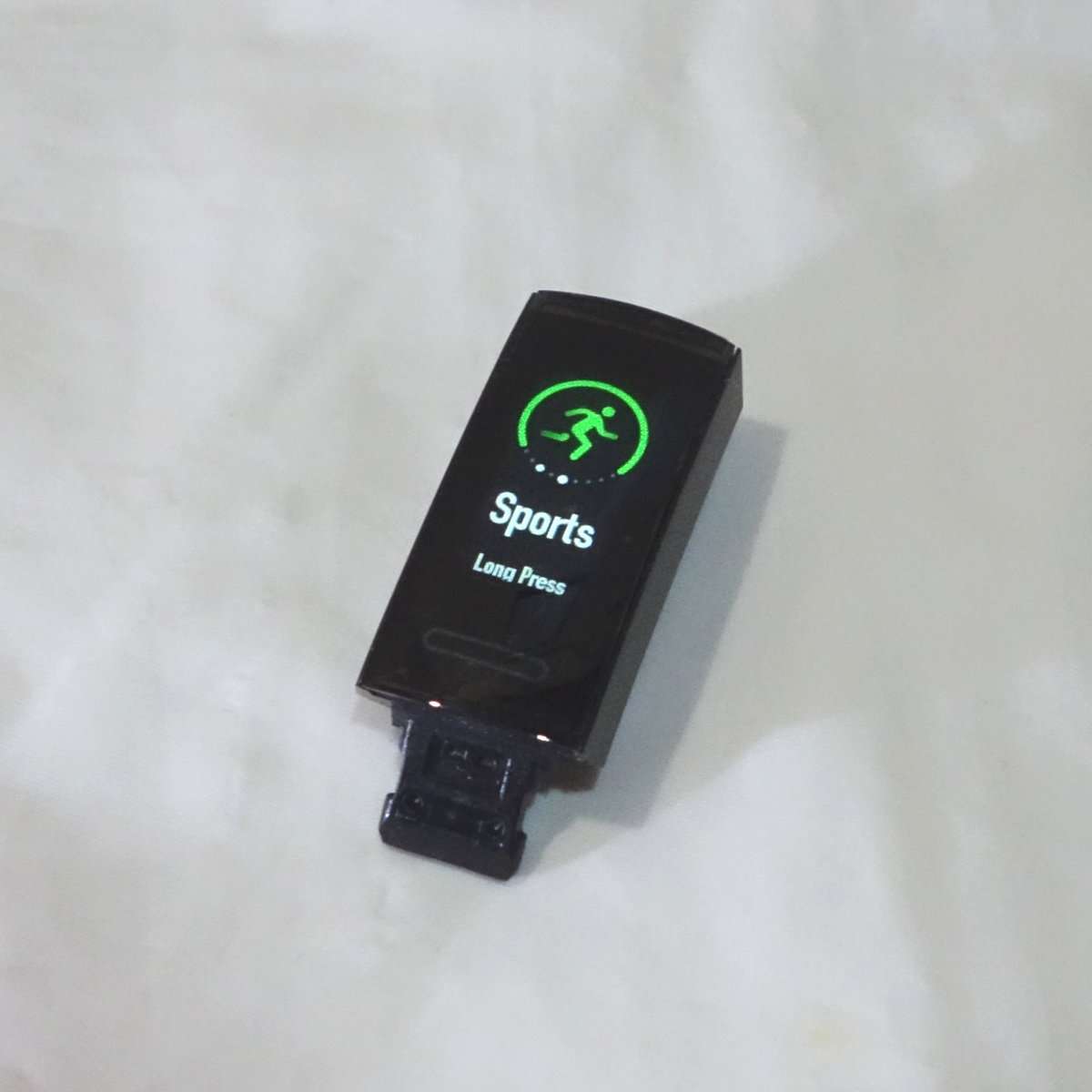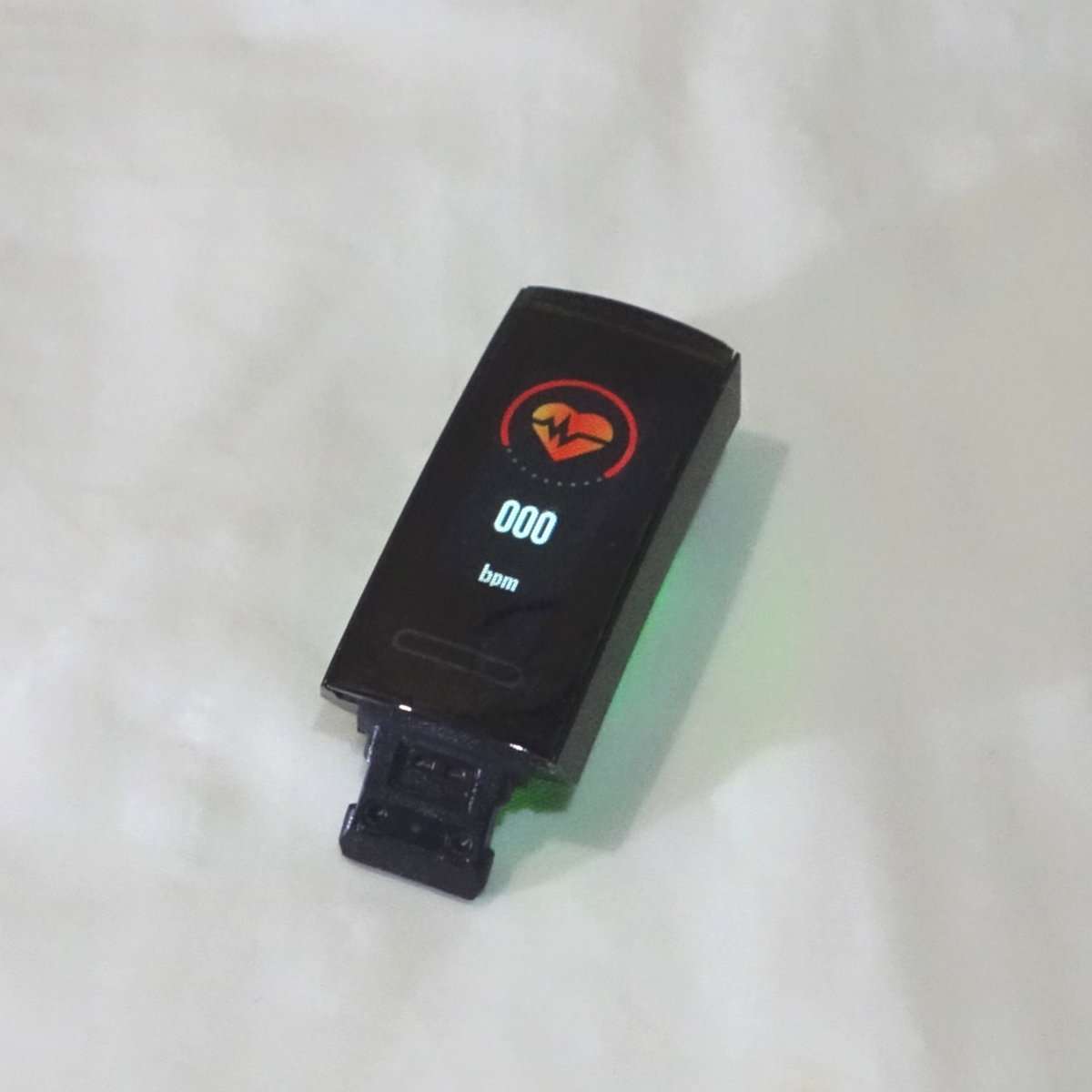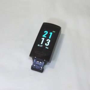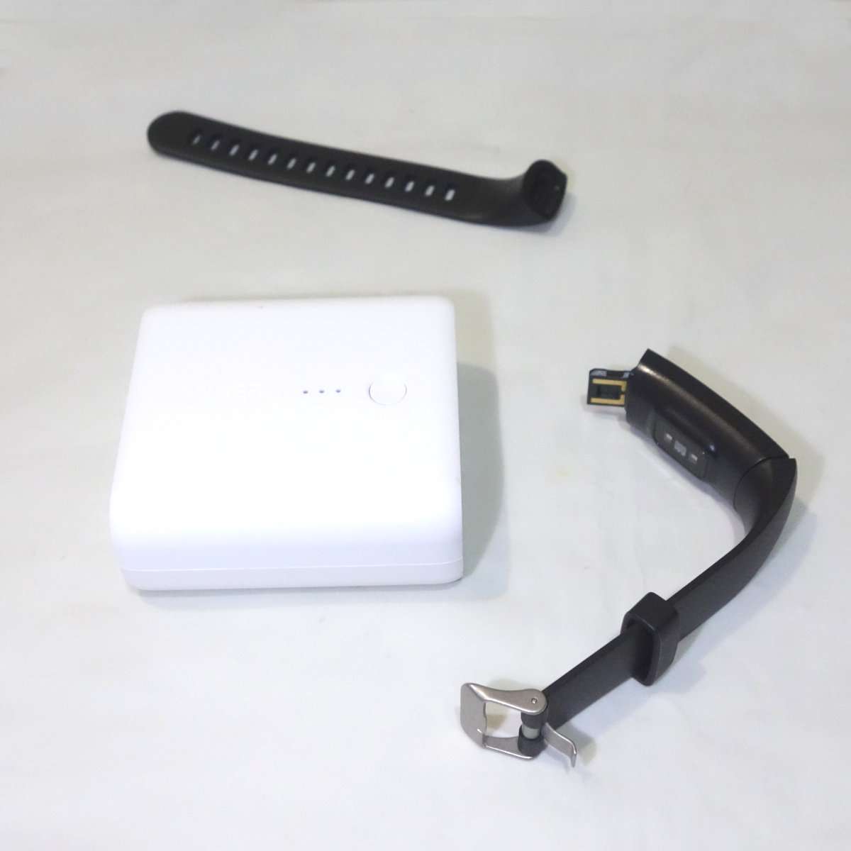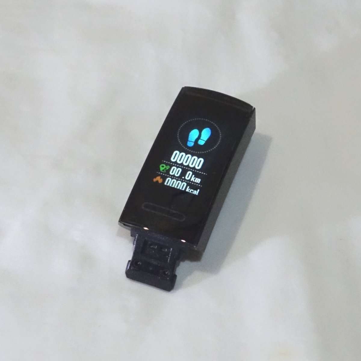 本体は非常にコンパクトで部屋で落としたらなくしてしまいそうなくらいの大きさです。スマートウォッチ本体に充電用のUSB端子がついておりそこにバンドをはめるようになっています。