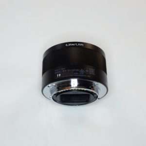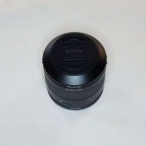 SEL35F28Zを手にってみると本当に軽量で小さくまとまっています。コンパクトなレンズでレンズ部分が小さいのもありフジツボフードが付属しています。フィルター枠が49mmから40.5mm枠へ変換されているので40.5mmサイズのレンズキャップが取り付けられています。