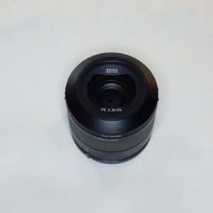 今回選んだのはSONY ZEISS(ソニーツァイス)のSEL35F28ZでEマウント用の35mm F2.8の単焦点レンズです。AF(オートフォーカス)対応で重量は約120gと非常に軽量でコンパクトなレンズです。