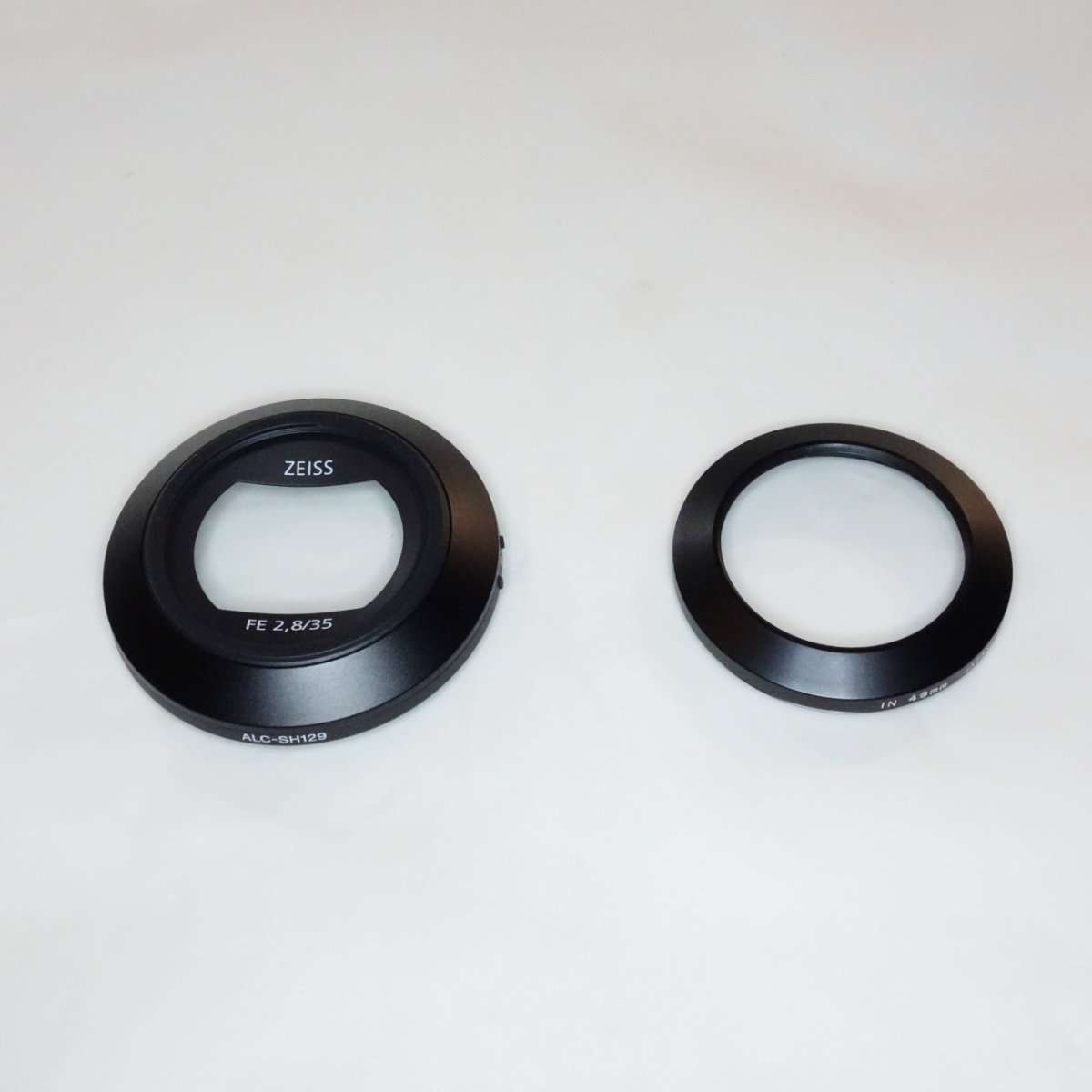 SEL35F28Zにはフジツボフードが付属しています。フジツボフードとはレンズ枠より先端が細くなっているフードの事でPENTAX用などが有名です。SEL35F28Zに付属するフジツボフードは取り付け径が49mmで先端が40.5mmになっています。40.5mmはa7CのキットレンズSEL2860と同じサイズなのでフィルターなどを共有する事が出来ます。