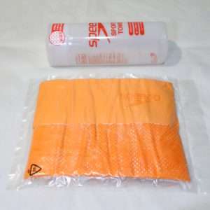 スイムタオルは小型ながら吸水力が高く通常のタオルと違い絞るとすぐに乾いたような状態になり続けて吸水させ続ける事が出来て、プールサイドやシャワーで使う際にに非常に便利なタオルです。今回購入した商品の正式名はセームタオル小、型番はSD96T02でカラーはフラッシュオレンジ(FO)サイズはサイズは幅430mm×高さ320mmとなります。カラーはフラッシュオレンジとなってますが、乾いている時の実際の色味はほとんどサーモンピンクです。新色でブラックも出ていてこちらも格好いいのでおすすめです。
